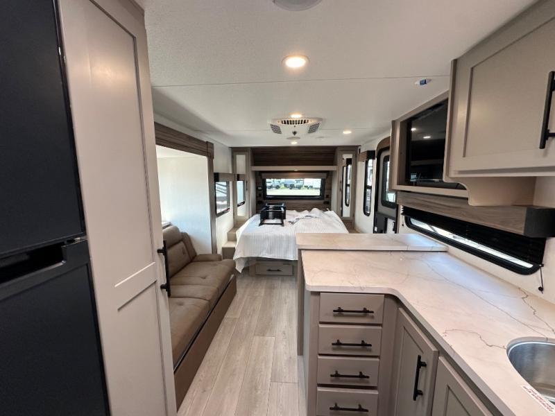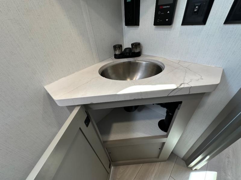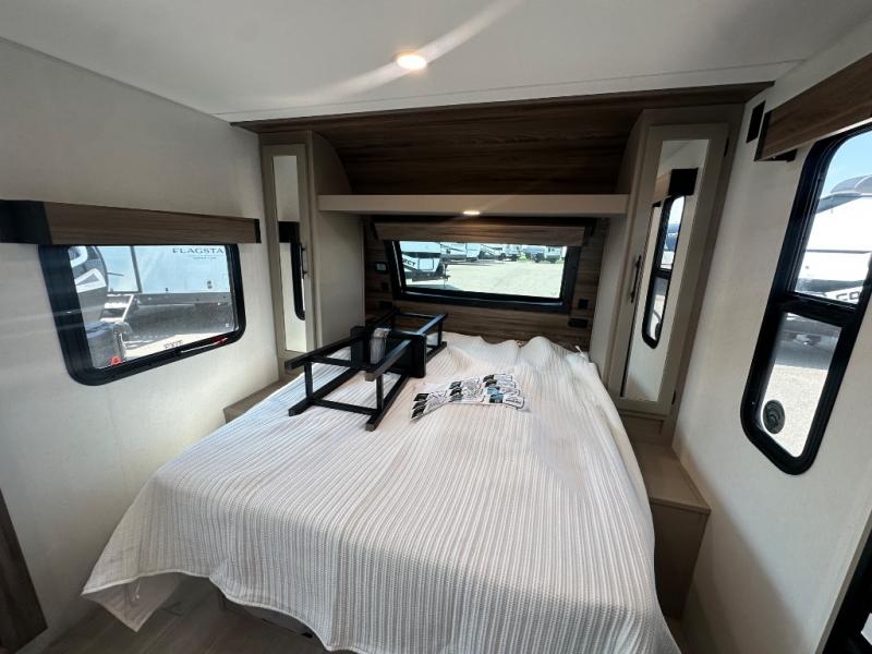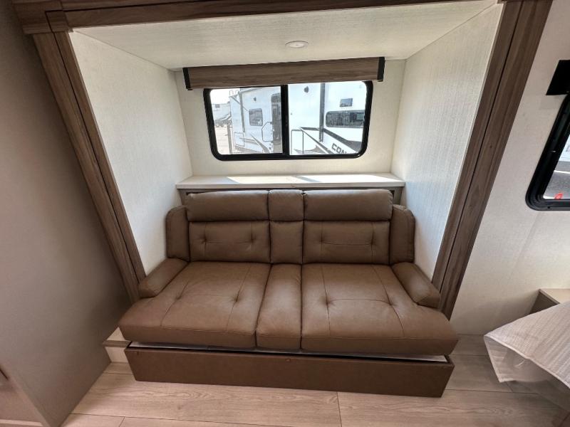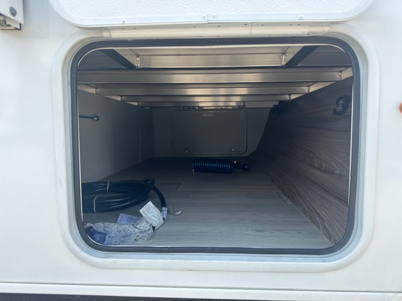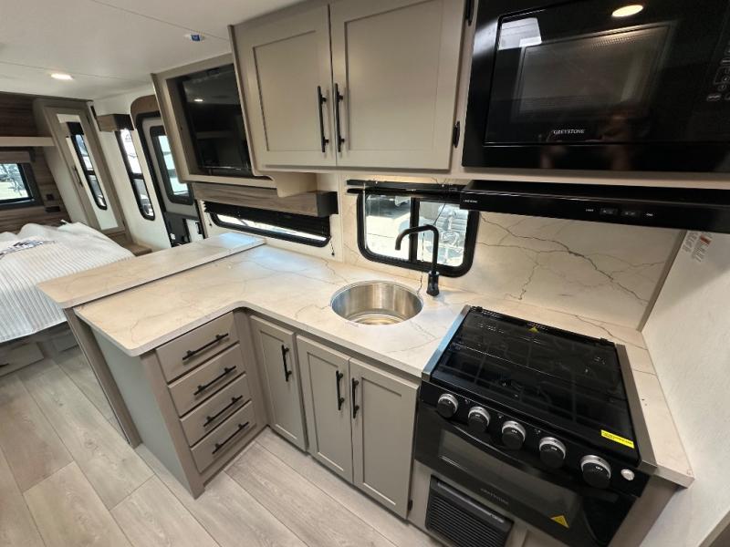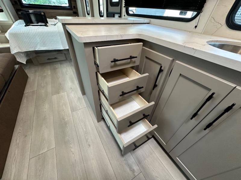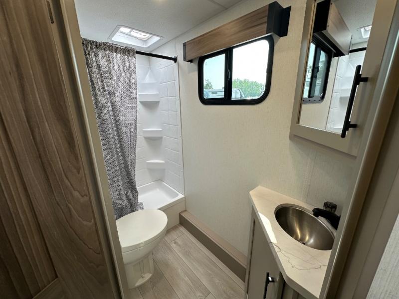 This travel trailer is the biggest in the Connect Mini lineup and you're sure to love it! There are double-size bunks for guests or little ones and a front RV queen bed for you! The slide out with a jackknife sofa and table will provide a place to relax and enjoy a meal together, and there is additional seating at the bar top with two stools. There is plenty of storage space found with this model, including dual bedroom closets, a pass-through storage, plus a pass-thru storage up front for fishing poles, hiking gear, and more! You will also love having an outside kitchen to cook meals when the weather is nice!