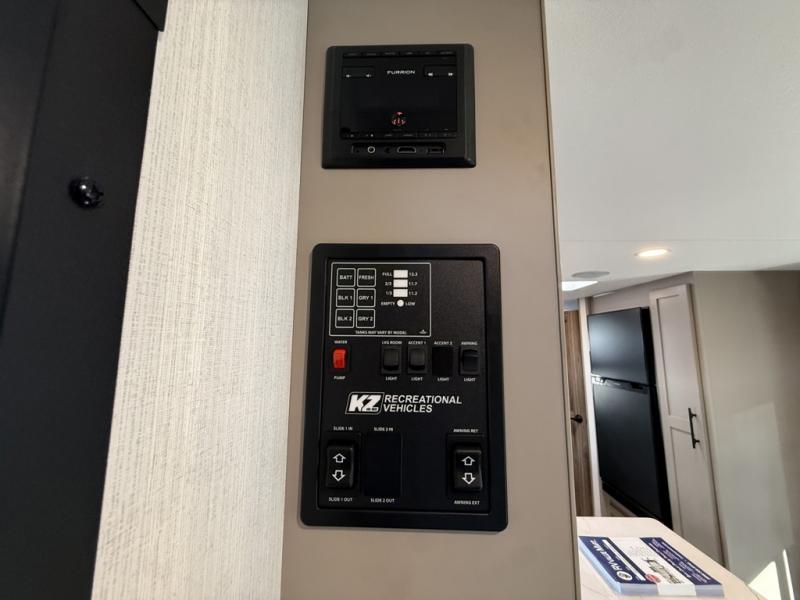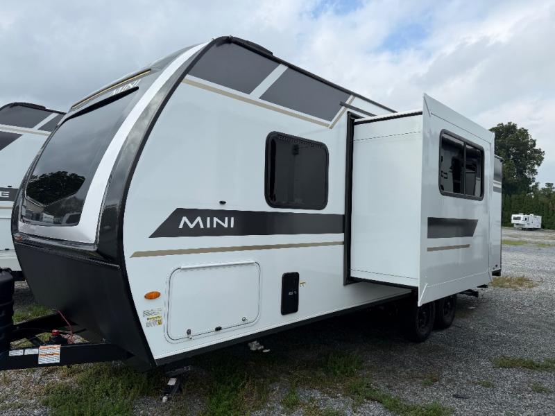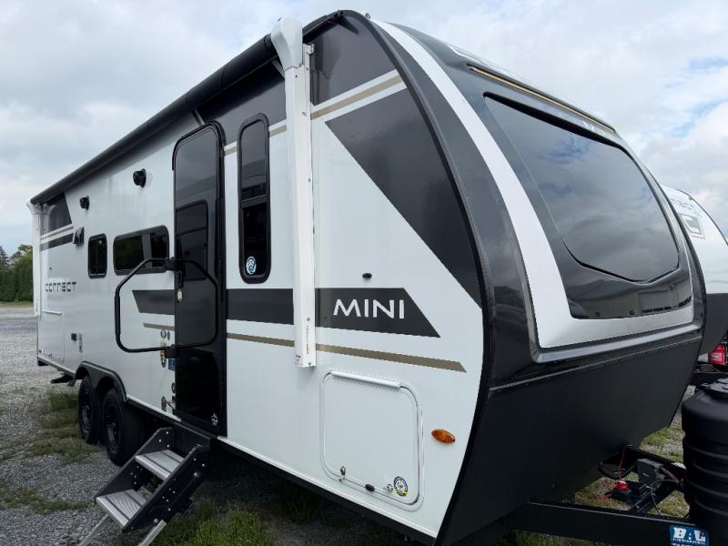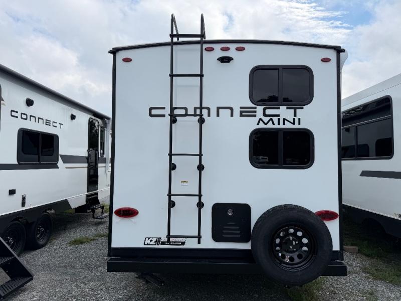 With any Connect Mini travel trailer by KZ, you will enjoy lightweight towing, interior comforts, and a price point you're sure to appreciate. Each model is constructed with durable 1-piece Tufflex material, 5/8" tongue and groove plywood flooring, and a molded fiberglass front cap with a windshield to let of your outdoor views in! You will love the look of the full glass friction hinged entry door, and the power awning with an LED light strip will provide a place to visit outdoors with friends and family. A hot and cold exterior shower also comes standard, along with a folding grab handle plus roof mounted solar prep and backup camera prep. Head inside to find residential grade linoleum, seamless countertops, roller shades, and painted hardwood cabinet doors. The 42,000 BTU tankless hot water heater will provide endless hot showers, and the low profile 13,500 BTU A/C will keep you comfortable during the summer!