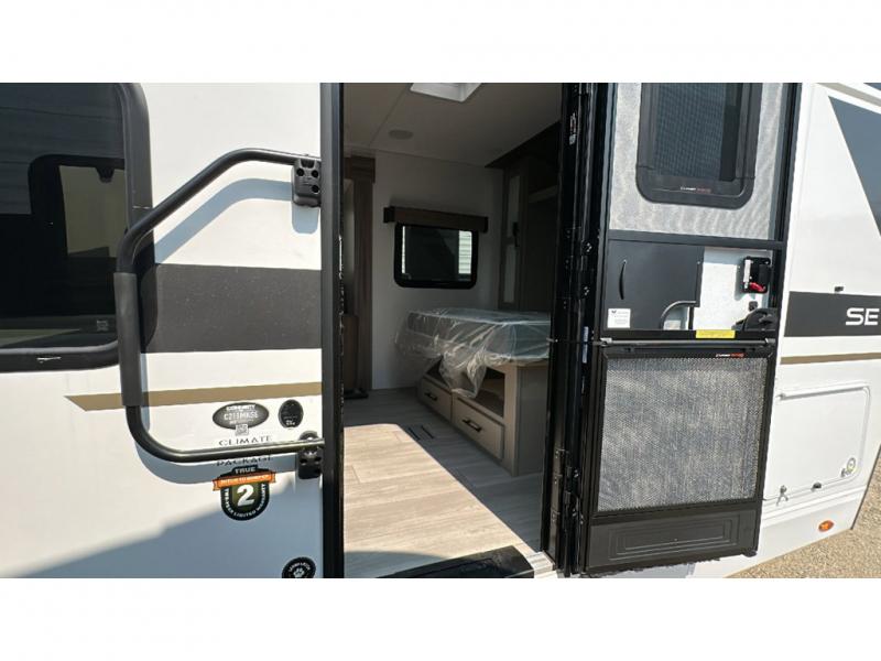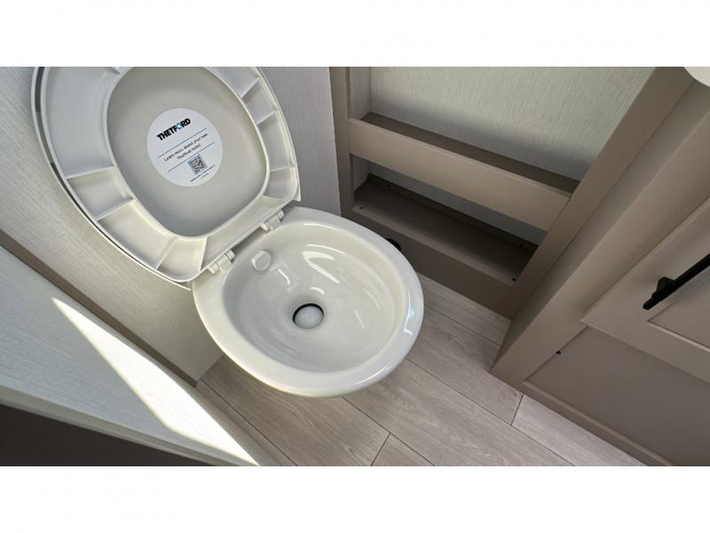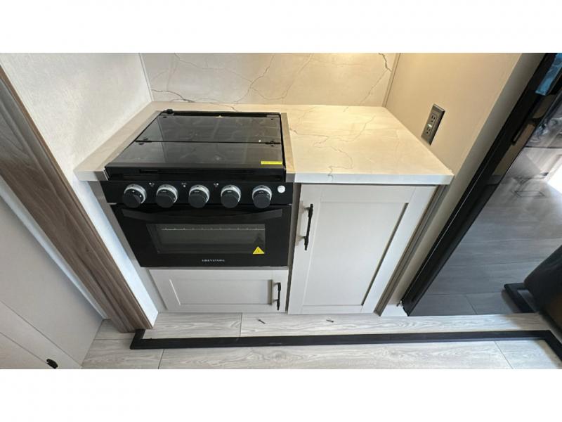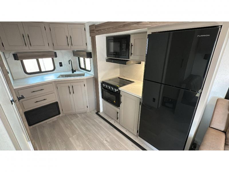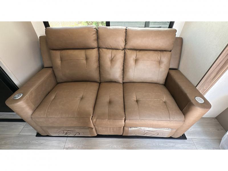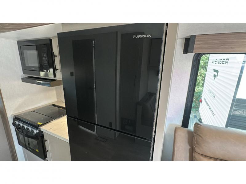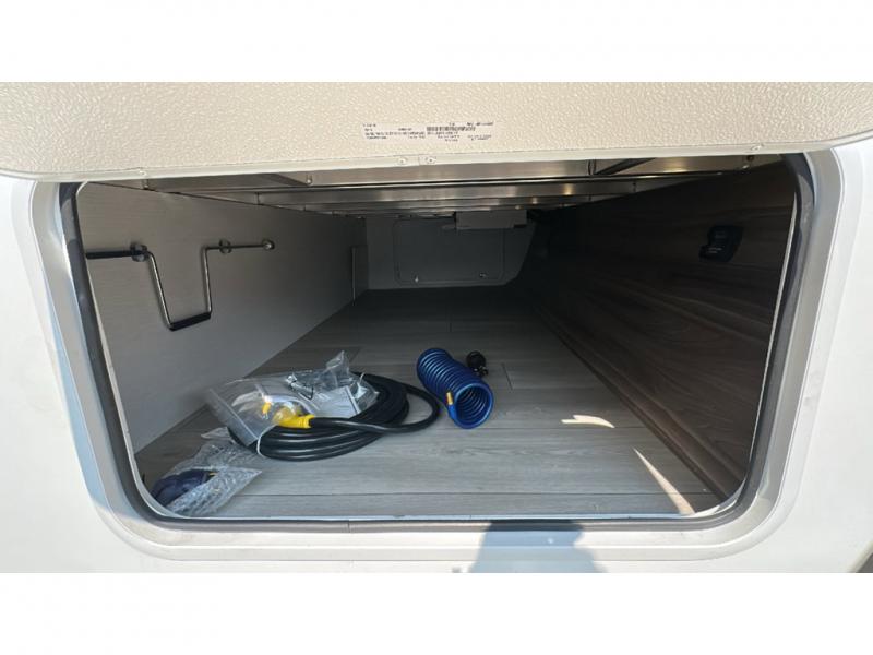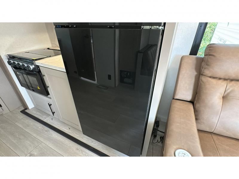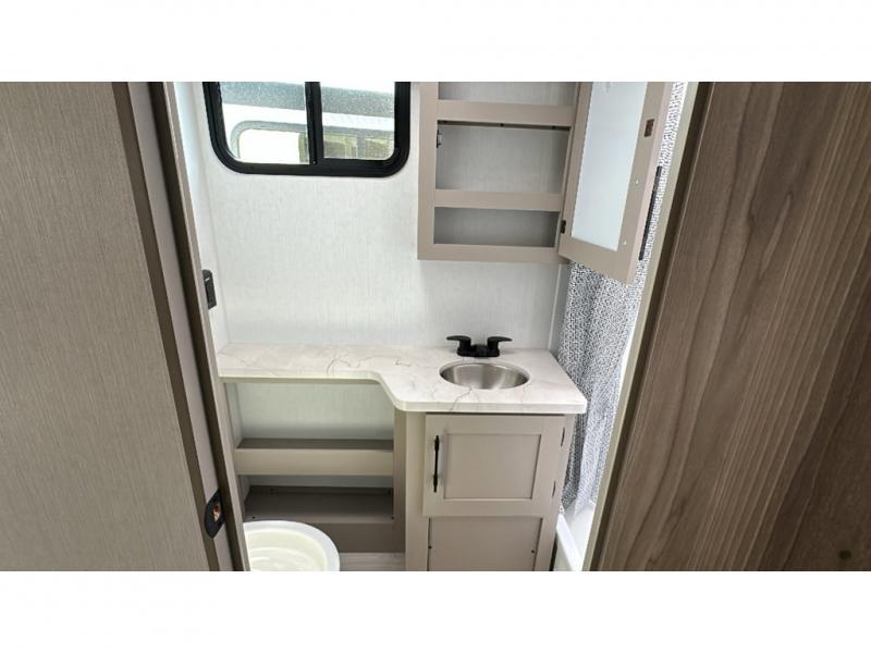 Travel on weekends, weekdays or whenever you want with this spacious trailer that has a large slide out that holds the theater seats with cupholders and USB ports, the 10 cu. ft. 12V refrigerator, and the cooking appliances. The rear corner has the kitchen sink and more counter space, giving the cook plenty of space to whip up camping meals. You can dine at the booth dinette or outside under the 18' power awning after grabbing your camping chairs from the pass-through storage. At night, get cleaned in the full bathroom with a nice amount of counter space for your toiletries, and fall quickly to sleep on your own queen bed up front with dual wardrobes for your clothing.