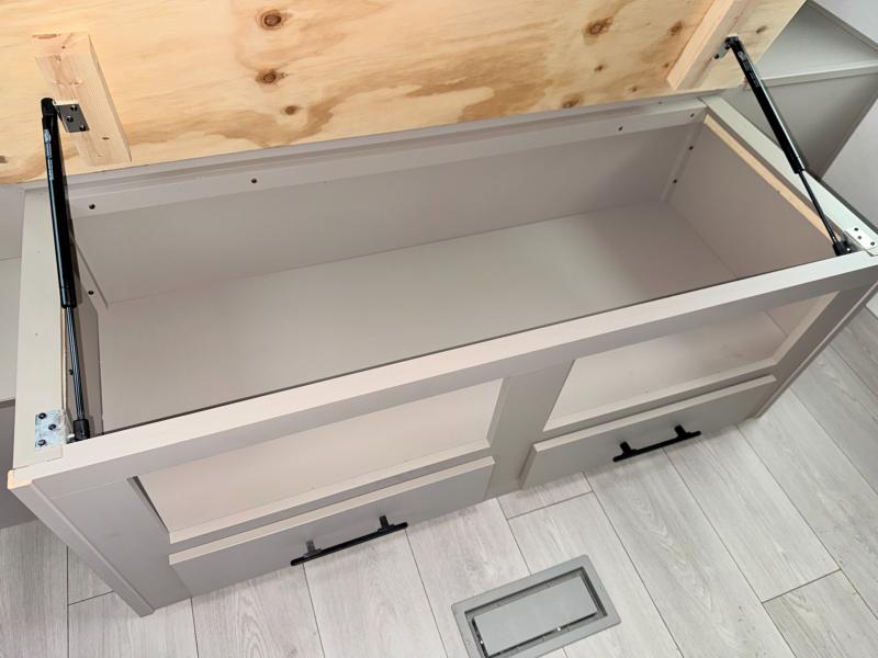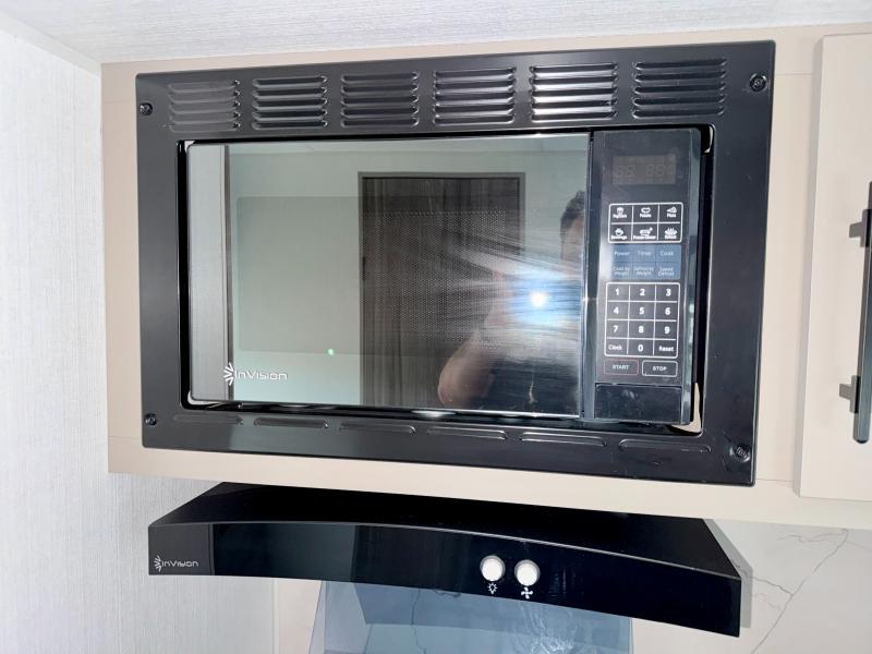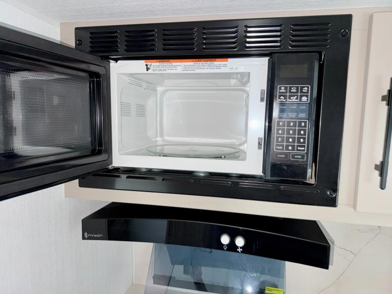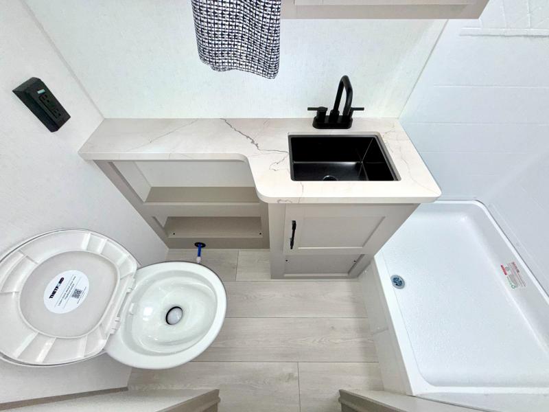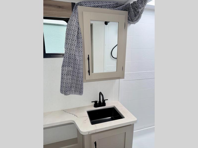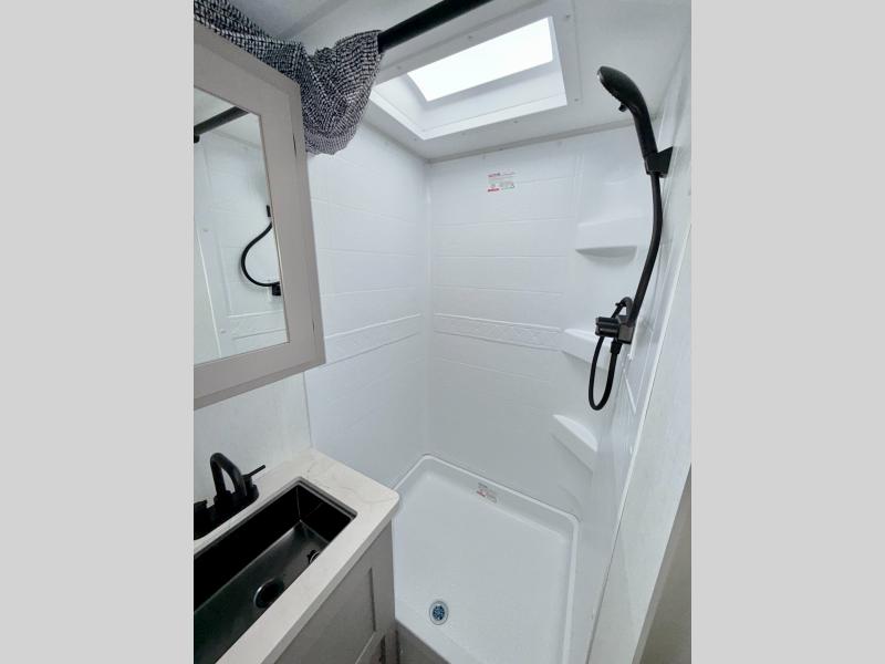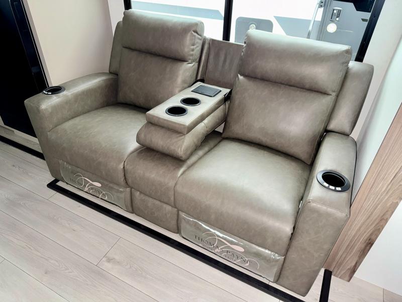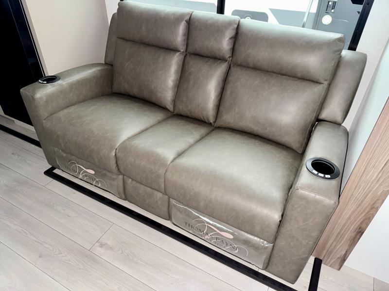 Travel on weekends, weekdays or whenever you want with this spacious trailer that has a large slide out that holds the theater seats with cupholders and USB ports, the 10 cu. ft. 12V refrigerator, and the cooking appliances. The rear corner has the kitchen sink and more counter space, giving the cook plenty of space to whip up camping meals. You can dine at the booth dinette or outside under the 18' power awning after grabbing your camping chairs from the pass-through storage. At night, get cleaned in the full bathroom with a nice amount of counter space for your toiletries, and fall quickly to sleep on your own queen bed up front with dual wardrobes for your clothing.