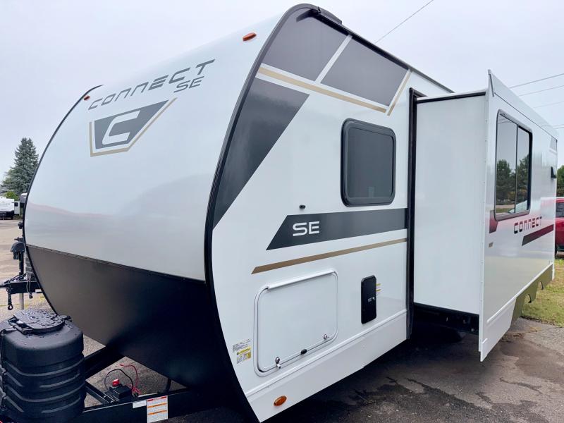 Each Connect SE travel trailer by KZ includes an NXG frame, which is a high quality, highly engineered frame that provides a lightweight yet strong foundation for your RV. The Climate package provides added insulation to extend your camping season year-round with a fully enclosed, insulated and heated underbelly to protect the tanks and pipes. Some top features include the 17-inch range with illuminated control knobs, the seamless countertops with a deep undermount stainless steel kitchen sink including a sink cover for added countertop space, and a black high-rise faucet. You will also enjoy the KZ Engage that is powered by OneControl to monitor and control the battery levels, the slide(s), the leveling system, the awning(s), plus the inside and outside lighting. Choose your favorite today!