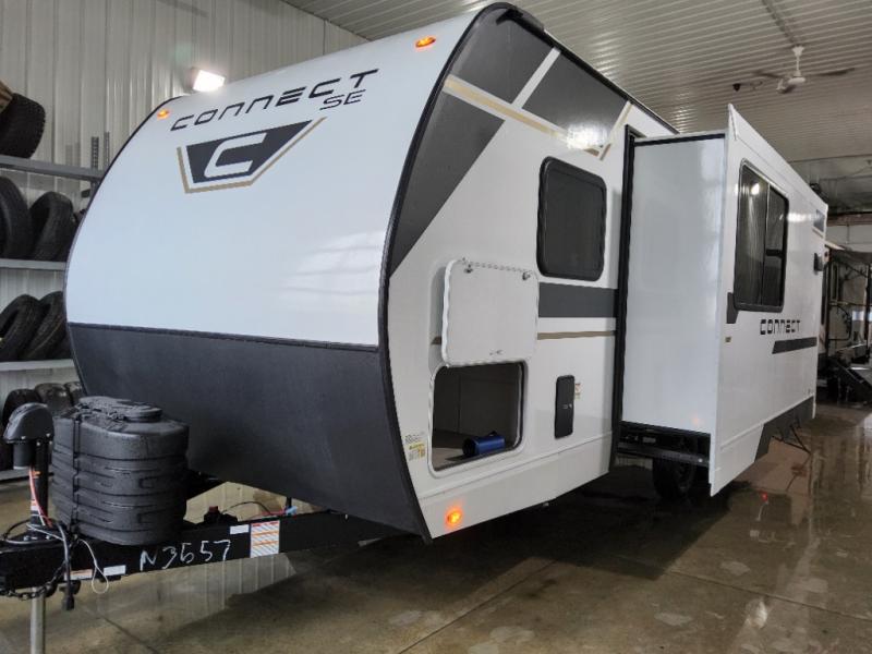 Each Connect SE travel trailer by KZ includes an NXG frame, which is a high quality, highly engineered frame that provides a lightweight yet strong foundation for your RV. The Climate package provides added insulation to extend your camping season year-round with a fully enclosed, insulated and heated underbelly to protect the tanks and pipes. Some top features include the 17-inch range with illuminated control knobs, the seamless countertops with a deep undermount stainless steel kitchen sink including a sink cover for added countertop space, and a black high-rise faucet. You will also enjoy the KZ Engage that is powered by OneControl to monitor and control the battery levels, the slide(s), the leveling system, the awning(s), plus the inside and outside lighting. Choose your favorite today!