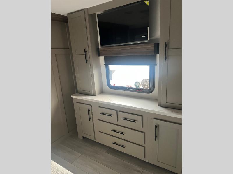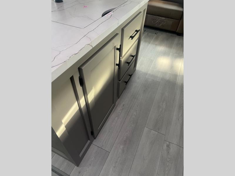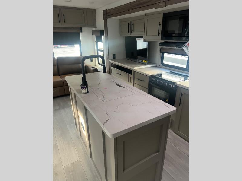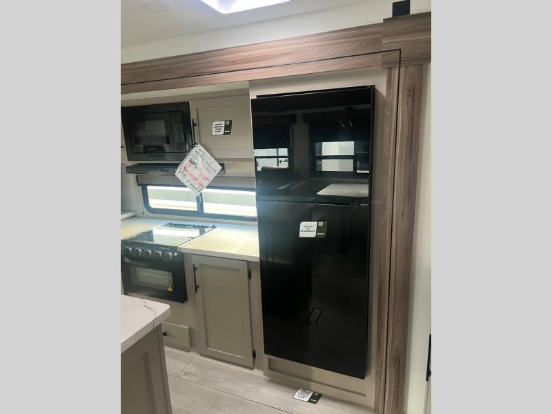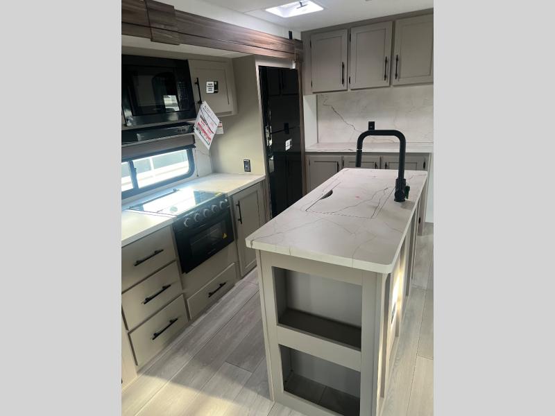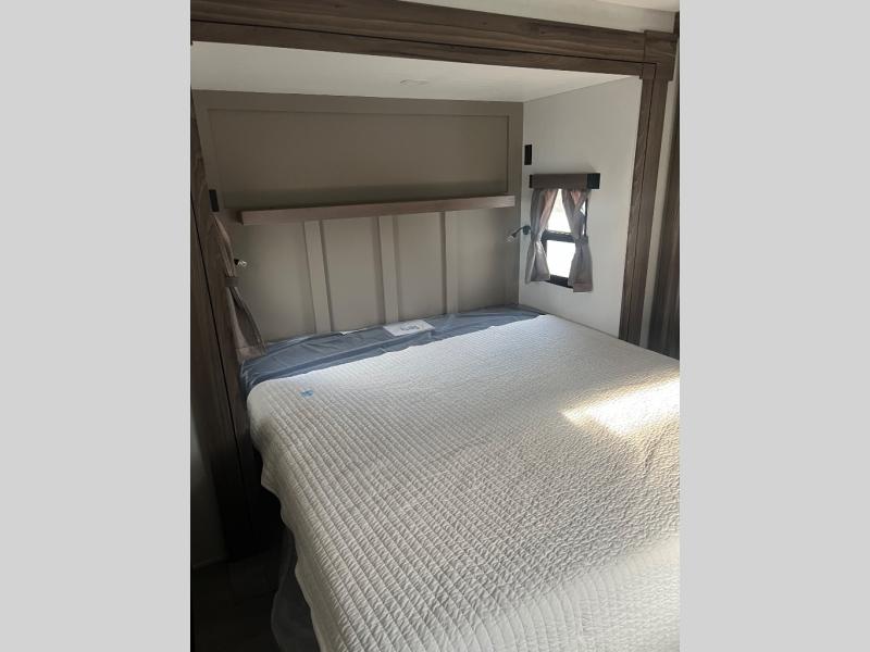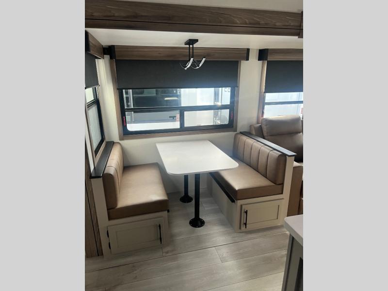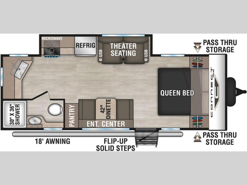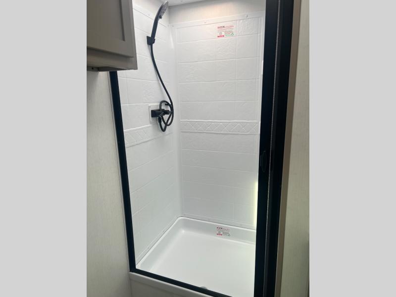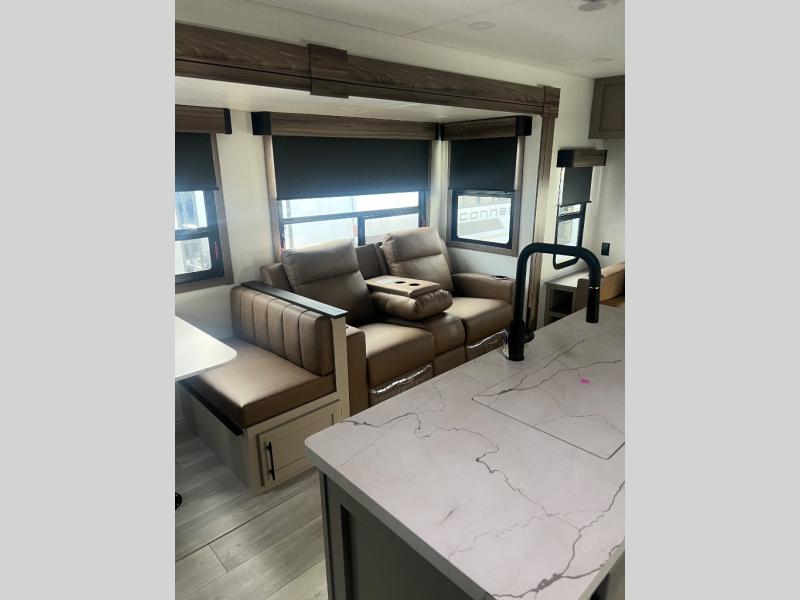 How about a nice afternoon of relaxing on the lake and then rinsing off in the 30" x 36" shower on this Connect travel trailer? After you get clean, you can grab a fresh change of clothes from the front walk-in closet and dresser in the private bedroom. The bedroom also has an area prepped for a washer and dryer and a king bed slide. Out in the main living area, you'll be able to prepare a meal without much effort at all since this trailer has a three-burner range, a microwave, a 10 cu. ft. 12V refrigerator, and a kitchen island for more prep space. You can even have your friends sit on the 70" sofa, theater seating, and booth dinette to chat with you while you finish the meal. You all will also benefit from the two electric awnings with LED lights on the exterior.