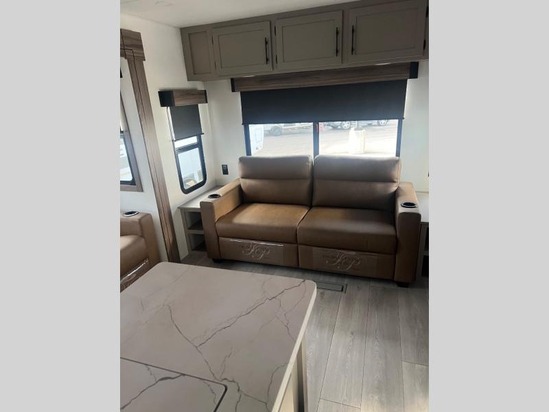 The KZ Connect travel trailer comes with an RV Airflow System which optimizes the airflow for your air conditioner. This improves performance, speeds up cooling times, and reduces noise in your trailer. Some of the other helpful features found on the Connect are the heated, insulated, and enclosed underbelly, the exterior docking station, the fiberglass front cap with front windshield, the 82" interior ceiling height, and the protective front diamond plate. There are some useful technological features, like the two LED motion-sensor lights, the HDMI and USB charger. The KZ Engage is powered by OneControl, and it monitors battery levels and controls slide rooms, the leveling system, the awning, inside/outside lighting, and the TPMS prep.