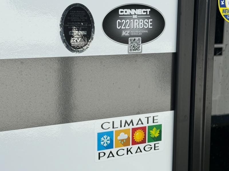 Each Connect SE travel trailer by KZ includes an NXG frame, which is a high quality, highly engineered frame that provides a lightweight yet strong foundation for your RV. The Climate package provides added insulation to extend your camping season year-round with a fully enclosed, insulated and heated underbelly to protect the tanks and pipes. Some top features include the 17-inch range with illuminated control knobs, the seamless countertops with a deep undermount stainless steel kitchen sink including a sink cover for added countertop space, and a black high-rise faucet. You will also enjoy the KZ Engage that is powered by OneControl to monitor and control the battery levels, the slide(s), the leveling system, the awning(s), plus the inside and outside lighting. Choose your favorite today!
