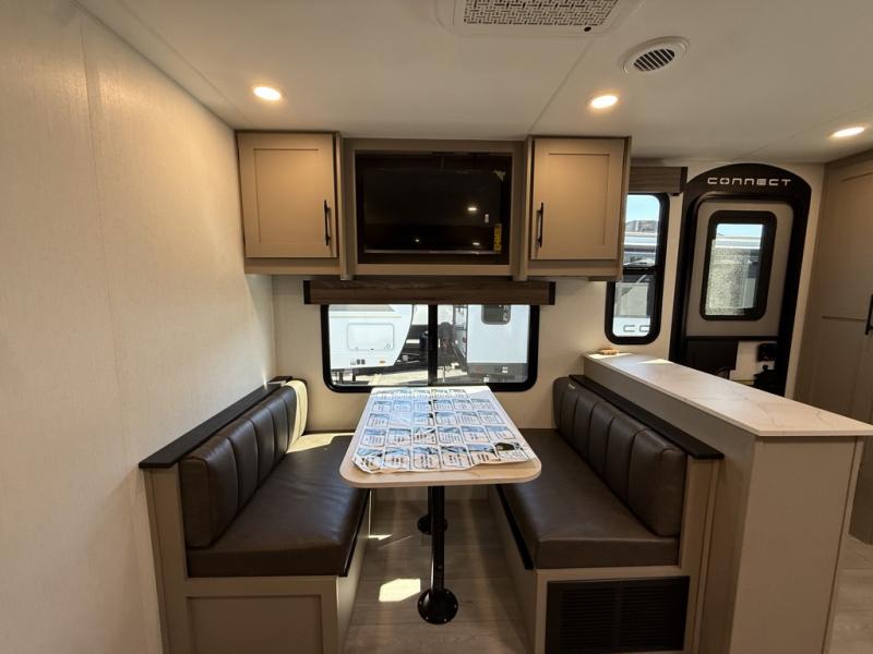 Each Connect SE travel trailer by KZ includes an NXG frame, which is a high quality, highly engineered frame that provides a lightweight yet strong foundation for your RV. The Climate package provides added insulation to extend your camping season year-round with a fully enclosed, insulated and heated underbelly to protect the tanks and pipes. Some top features include the 17-inch range with illuminated control knobs, the seamless countertops with a deep undermount stainless steel kitchen sink including a sink cover for added countertop space, and a black high-rise faucet. You will also enjoy the KZ Engage that is powered by OneControl to monitor and control the battery levels, the slide(s), the leveling system, the awning(s), plus the inside and outside lighting. Choose your favorite today!