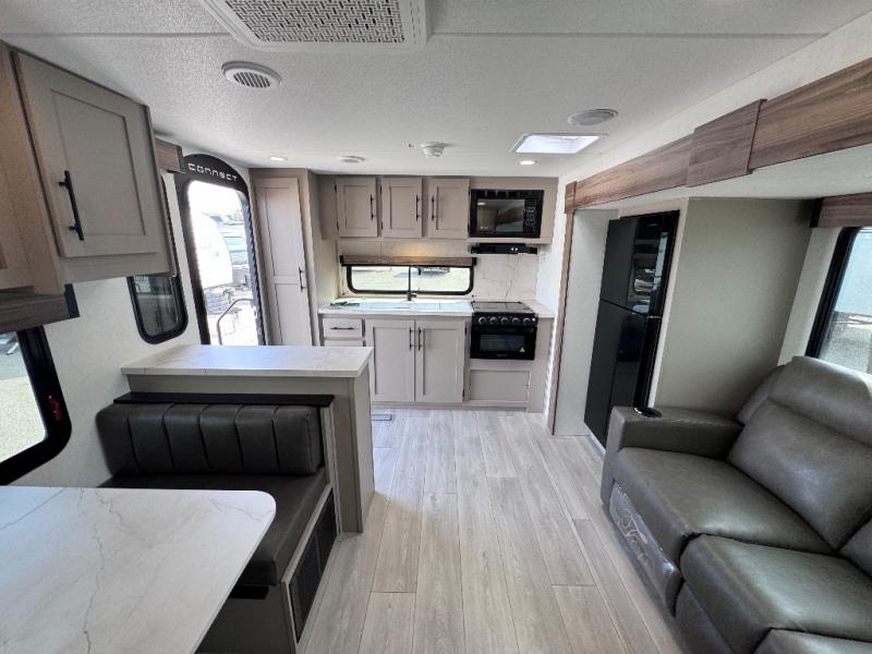 Each Connect SE travel trailer by KZ includes an NXG frame, which is a high quality, highly engineered frame that provides a lightweight yet strong foundation for your RV. The Climate package provides added insulation to extend your camping season year-round with a fully enclosed, insulated and heated underbelly to protect the tanks and pipes. Some top features include the 17-inch range with illuminated control knobs, the seamless countertops with a deep undermount stainless steel kitchen sink including a sink cover for added countertop space, and a black high-rise faucet. You will also enjoy the KZ Engage that is powered by OneControl to monitor and control the battery levels, the slide(s), the leveling system, the awning(s), plus the inside and outside lighting. Choose your favorite today!