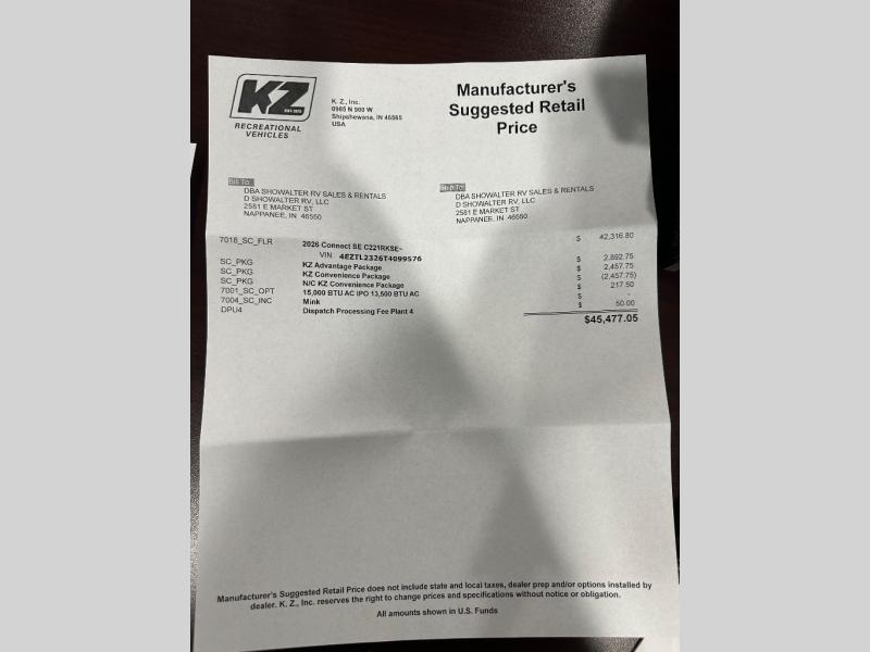 New 2026 KZ Connect SE C221RKSE Travel Trailer
