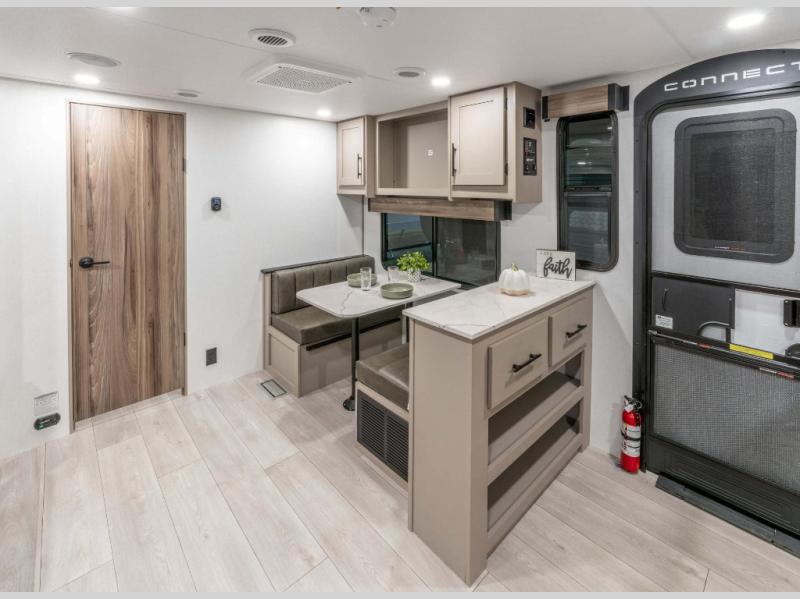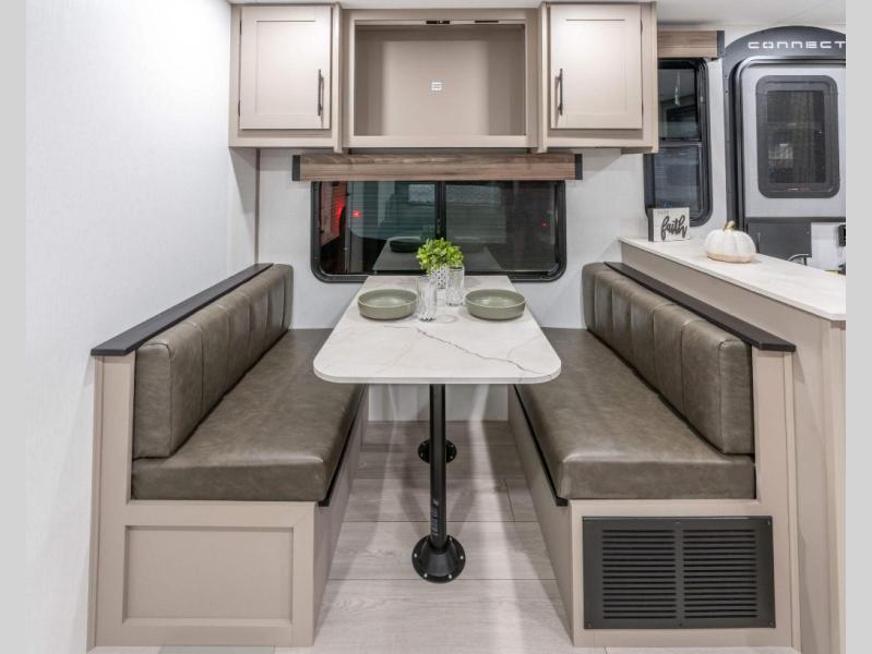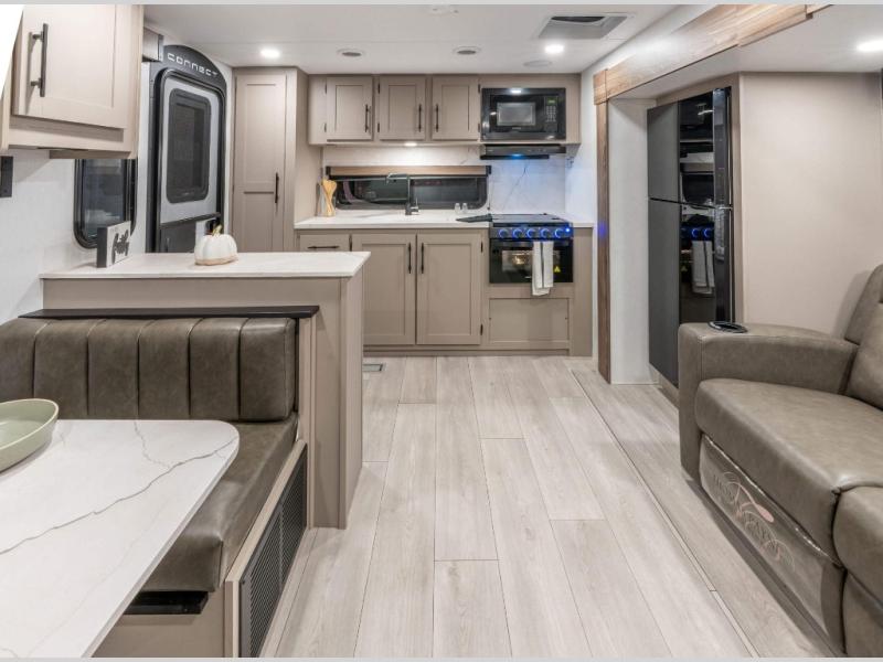 Each Connect SE travel trailer by KZ includes an NXG frame, which is a high quality, highly engineered frame that provides a lightweight yet strong foundation for your RV. The Climate package provides added insulation to extend your camping season year-round with a fully enclosed, insulated and heated underbelly to protect the tanks and pipes. Some top features include the 17-inch range with illuminated control knobs, the seamless countertops with a deep undermount stainless steel kitchen sink including a sink cover for added countertop space, and a black high-rise faucet. You will also enjoy the KZ Engage that is powered by OneControl to monitor and control the battery levels, the slide(s), the leveling system, the awning(s), plus the inside and outside lighting. Choose your favorite today!
