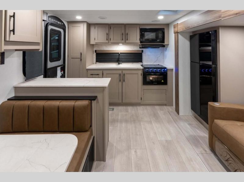 Each Connect SE travel trailer by KZ includes an NXG frame, which is a high quality, highly engineered frame that provides a lightweight yet strong foundation for your RV. The Climate package provides added insulation to extend your camping season year-round with a fully enclosed, insulated and heated underbelly to protect the tanks and pipes. Some top features include the 17-inch range with illuminated control knobs, the seamless countertops with a deep undermount stainless steel kitchen sink including a sink cover for added countertop space, and a black high-rise faucet. You will also enjoy the KZ Engage that is powered by OneControl to monitor and control the battery levels, the slide(s), the leveling system, the awning(s), plus the inside and outside lighting. Choose your favorite today!