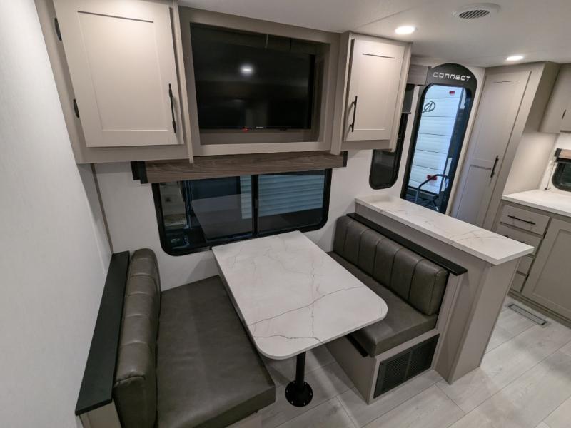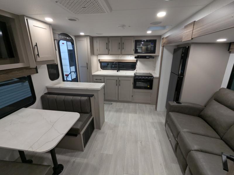 Each Connect SE travel trailer by KZ includes an NXG frame, which is a high quality, highly engineered frame that provides a lightweight yet strong foundation for your RV. The Climate package provides added insulation to extend your camping season year-round with a fully enclosed, insulated and heated underbelly to protect the tanks and pipes. Some top features include the 17-inch range with illuminated control knobs, the seamless countertops with a deep undermount stainless steel kitchen sink including a sink cover for added countertop space, and a black high-rise faucet. You will also enjoy the KZ Engage that is powered by OneControl to monitor and control the battery levels, the slide(s), the leveling system, the awning(s), plus the inside and outside lighting. Choose your favorite today!