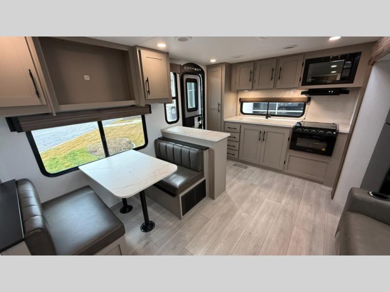 Each Connect SE travel trailer by KZ includes an NXG frame, which is a high quality, highly engineered frame that provides a lightweight yet strong foundation for your RV. The Climate package provides added insulation to extend your camping season year-round with a fully enclosed, insulated and heated underbelly to protect the tanks and pipes. Some top features include the 17-inch range with illuminated control knobs, the seamless countertops with a deep undermount stainless steel kitchen sink including a sink cover for added countertop space, and a black high-rise faucet. You will also enjoy the KZ Engage that is powered by OneControl to monitor and control the battery levels, the slide(s), the leveling system, the awning(s), plus the inside and outside lighting. Choose your favorite today!