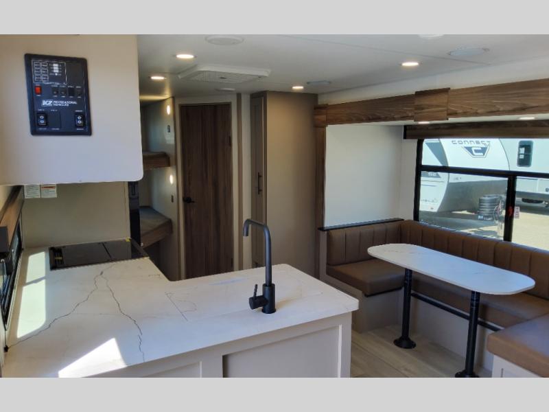 Each Connect SE travel trailer by KZ includes an NXG frame, which is a high quality, highly engineered frame that provides a lightweight yet strong foundation for your RV. The Climate package provides added insulation to extend your camping season year-round with a fully enclosed, insulated and heated underbelly to protect the tanks and pipes. Some top features include the 17-inch range with illuminated control knobs, the seamless countertops with a deep undermount stainless steel kitchen sink including a sink cover for added countertop space, and a black high-rise faucet. You will also enjoy the KZ Engage that is powered by OneControl to monitor and control the battery levels, the slide(s), the leveling system, the awning(s), plus the inside and outside lighting. Choose your favorite today!