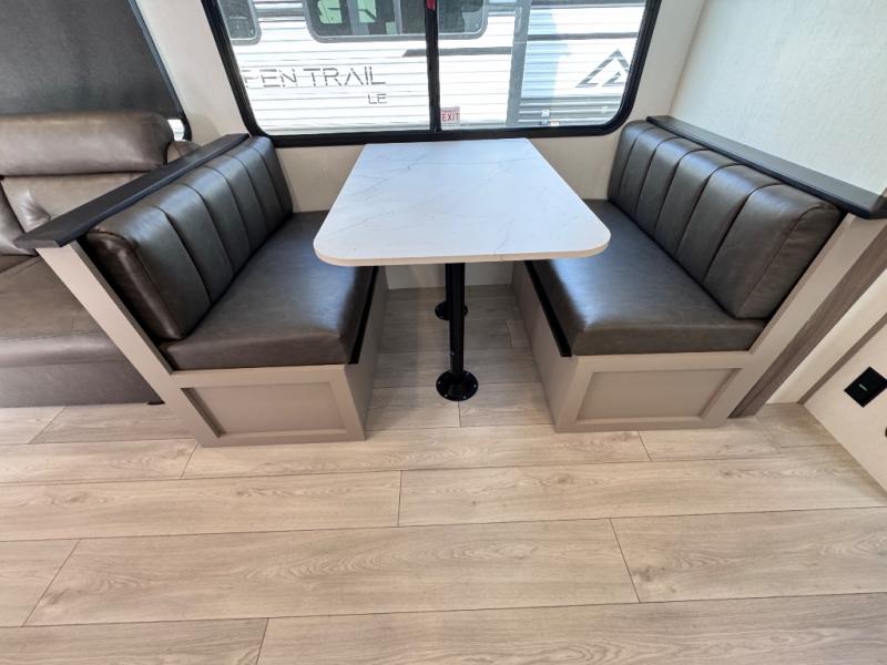 Headed to the RV park with your family and friends? Want enough space to allow overnight guests to stay the night on occasion? This trailer gives you double-size bunks, a 70" sofa and a booth dinette that offer extra sleeping space while you enjoy your own walk-around queen bed in the front private bedroom. You will also have dual wardrobes, and a TV mount to add your own TV. Everyone will stay refreshed and cleaned using the rear corner full bathroom, and fed by the cook that has an inside kitchen with full amenities including an L-shaped counter and a large sink. There is also a walk-in pantry with coat hooks next to the entry to utilize as a multi-purpose closet. And there is an outside kitchen with a griddle and a refrigerator, a 20' power awning with an LED light strip, and a pass-through storage for the larger camping items.