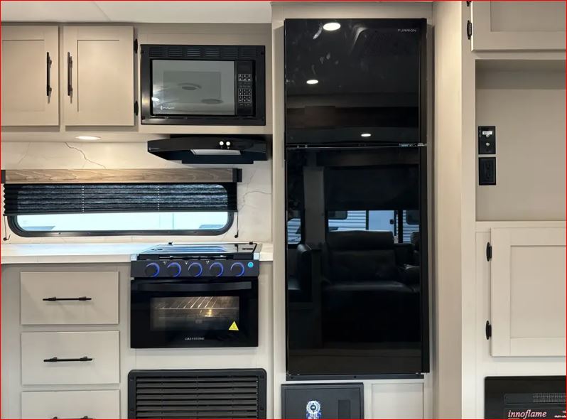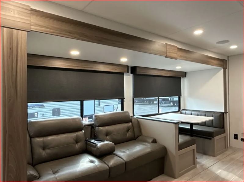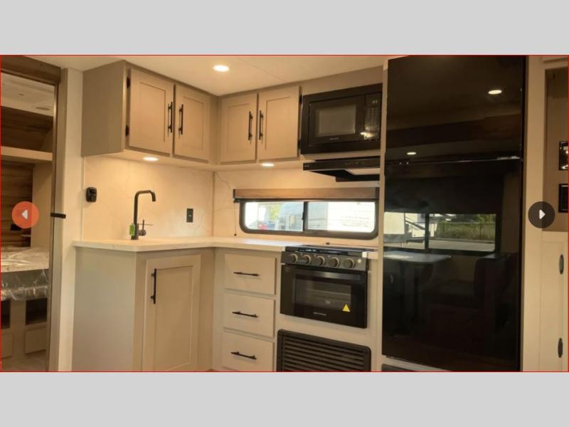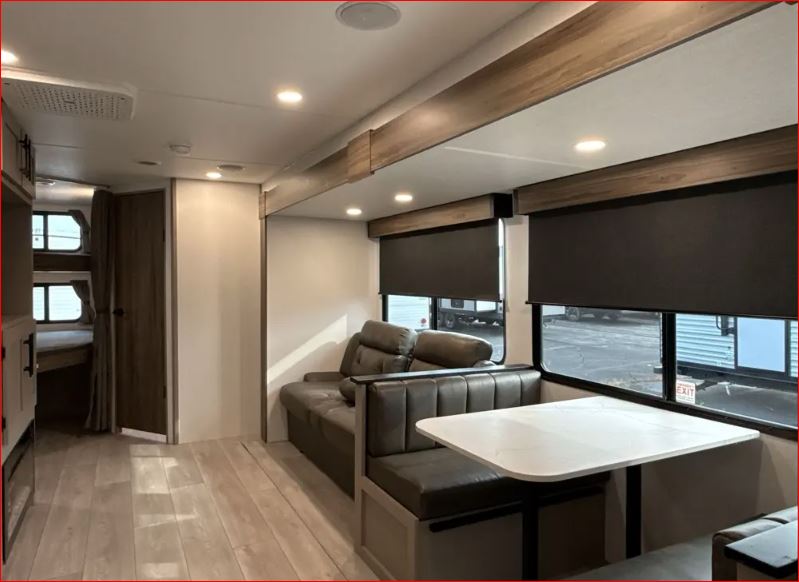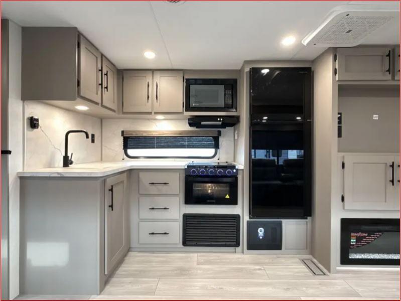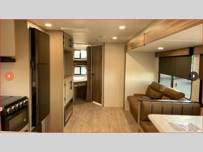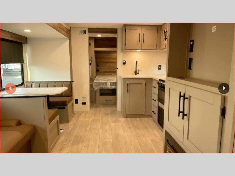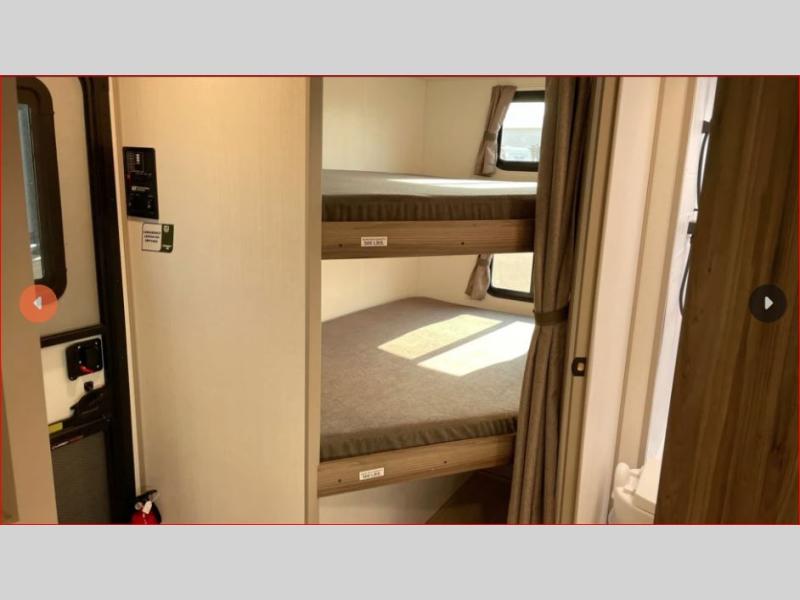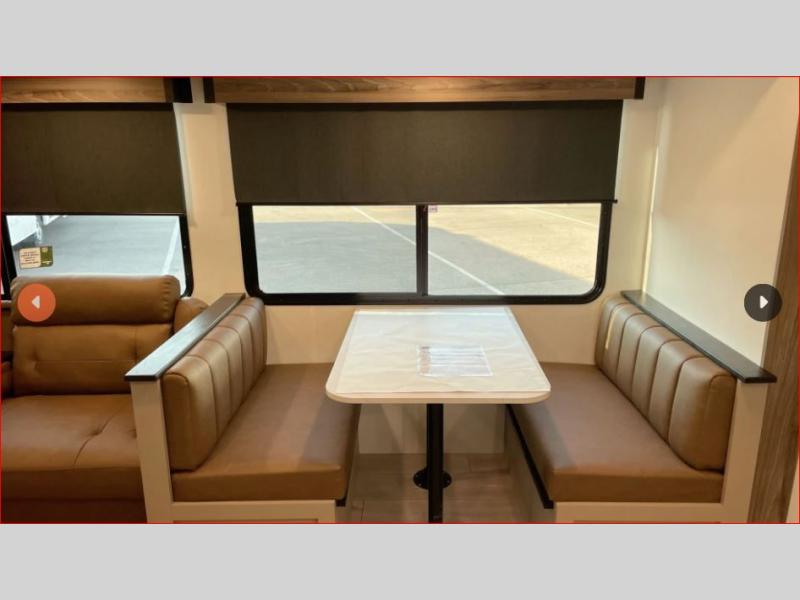 Headed to the RV park with your family and friends? Want enough space to allow overnight guests to stay the night on occasion? This trailer gives you double-size bunks, a 70" sofa and a booth dinette that offer extra sleeping space while you enjoy your own walk-around queen bed in the front private bedroom. You will also have dual wardrobes, and a TV mount to add your own TV. Everyone will stay refreshed and cleaned using the rear corner full bathroom, and fed by the cook that has an inside kitchen with full amenities including an L-shaped counter and a large sink. There is also a walk-in pantry with coat hooks next to the entry to utilize as a multi-purpose closet. And there is an outside kitchen with a griddle and a refrigerator, a 20' power awning with an LED light strip, and a pass-through storage for the larger camping items.