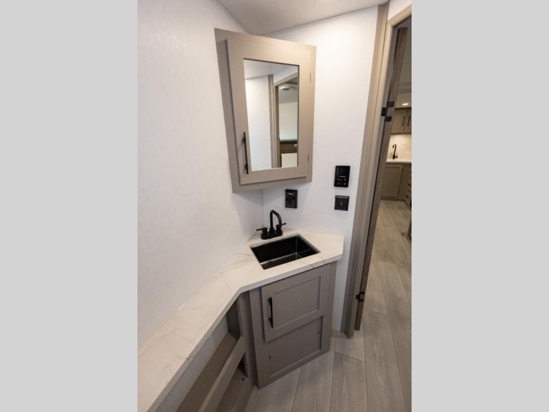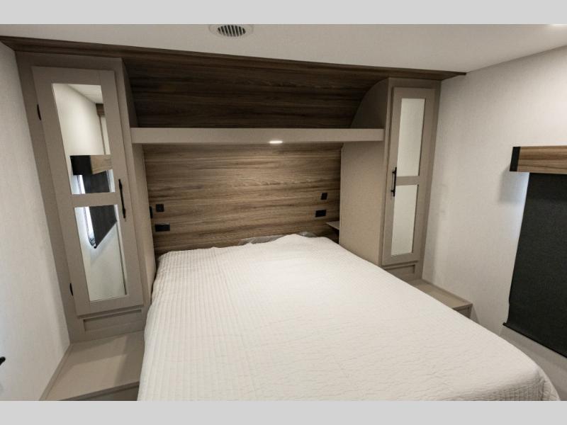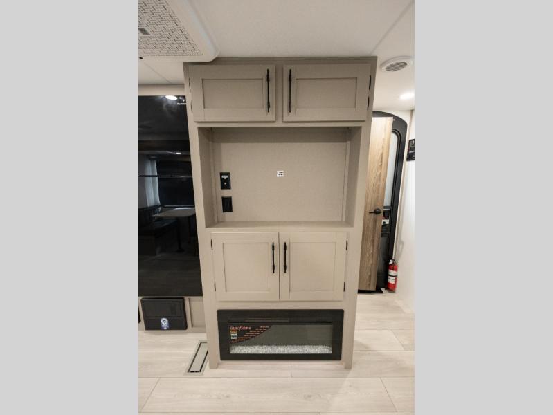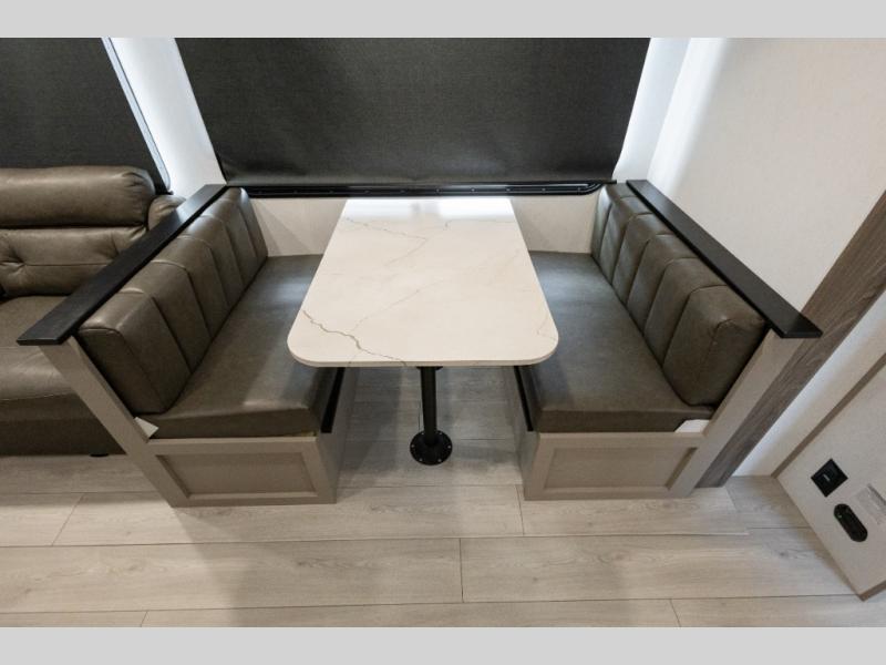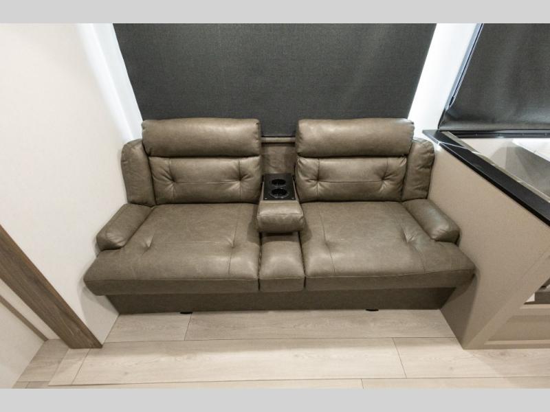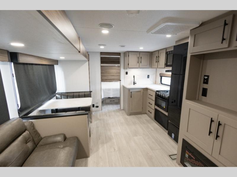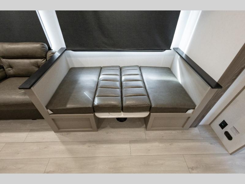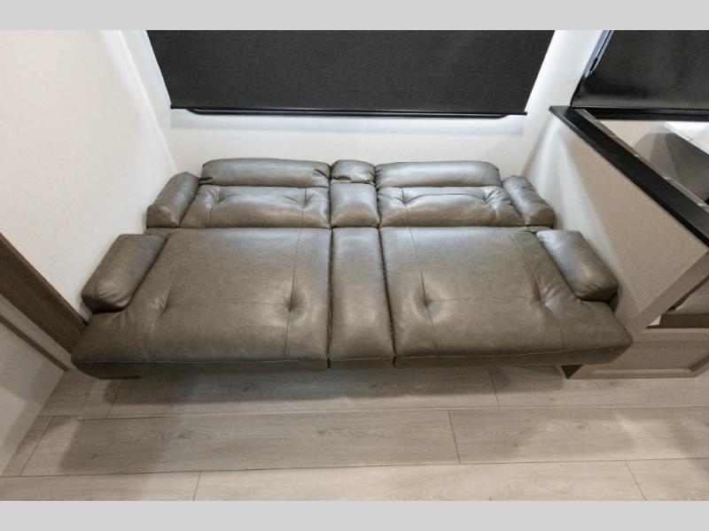 Headed to the RV park with your family and friends? Want enough space to allow overnight guests to stay the night on occasion? This trailer gives you double-size bunks, a 70" sofa and a booth dinette that offer extra sleeping space while you enjoy your own walk-around queen bed in the front private bedroom. You will also have dual wardrobes, and a TV mount to add your own TV. Everyone will stay refreshed and cleaned using the rear corner full bathroom, and fed by the cook that has an inside kitchen with full amenities including an L-shaped counter and a large sink. There is also a walk-in pantry with coat hooks next to the entry to utilize as a multi-purpose closet. And there is an outside kitchen with a griddle and a refrigerator, a 20' power awning with an LED light strip, and a pass-through storage for the larger camping items.