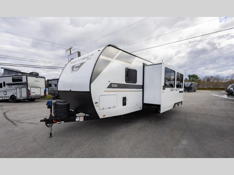 Each Connect SE travel trailer by KZ includes an NXG frame, which is a high quality, highly engineered frame that provides a lightweight yet strong foundation for your RV. The Climate package provides added insulation to extend your camping season year-round with a fully enclosed, insulated and heated underbelly to protect the tanks and pipes. Some top features include the 17-inch range with illuminated control knobs, the seamless countertops with a deep undermount stainless steel kitchen sink including a sink cover for added countertop space, and a black high-rise faucet. You will also enjoy the KZ Engage that is powered by OneControl to monitor and control the battery levels, the slide(s), the leveling system, the awning(s), plus the inside and outside lighting. Choose your favorite today!