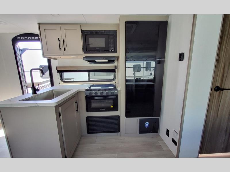 Each Connect SE travel trailer by KZ includes an NXG frame, which is a high quality, highly engineered frame that provides a lightweight yet strong foundation for your RV. The Climate package provides added insulation to extend your camping season year-round with a fully enclosed, insulated and heated underbelly to protect the tanks and pipes. Some top features include the 17-inch range with illuminated control knobs, the seamless countertops with a deep undermount stainless steel kitchen sink including a sink cover for added countertop space, and a black high-rise faucet. You will also enjoy the KZ Engage that is powered by OneControl to monitor and control the battery levels, the slide(s), the leveling system, the awning(s), plus the inside and outside lighting. Choose your favorite today!