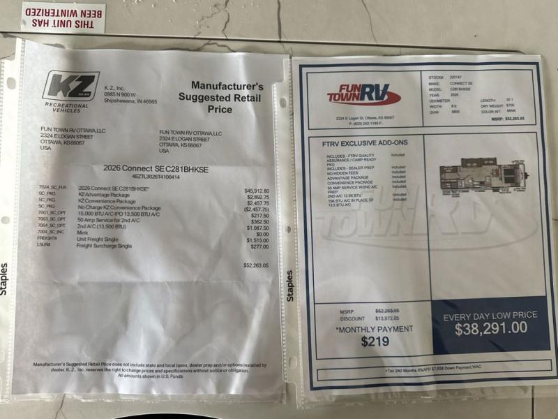 KZ Connect SE travel trailer C281BHKSE highlights: