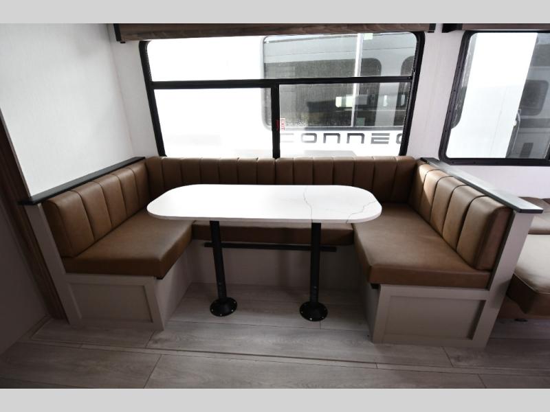 Each Connect SE travel trailer by KZ includes an NXG frame, which is a high quality, highly engineered frame that provides a lightweight yet strong foundation for your RV. The Climate package provides added insulation to extend your camping season year-round with a fully enclosed, insulated and heated underbelly to protect the tanks and pipes. Some top features include the 17-inch range with illuminated control knobs, the seamless countertops with a deep undermount stainless steel kitchen sink including a sink cover for added countertop space, and a black high-rise faucet. You will also enjoy the KZ Engage that is powered by OneControl to monitor and control the battery levels, the slide(s), the leveling system, the awning(s), plus the inside and outside lighting. Choose your favorite today!