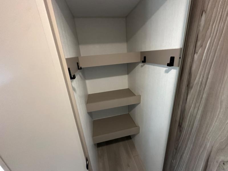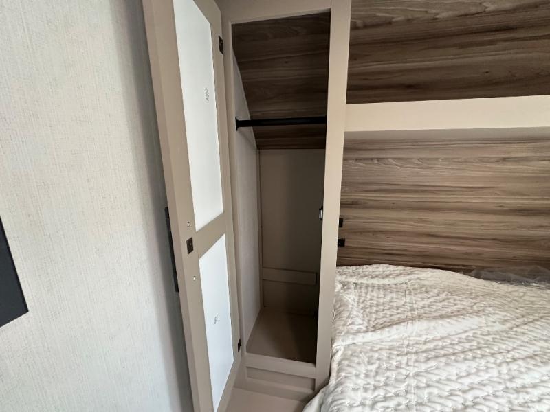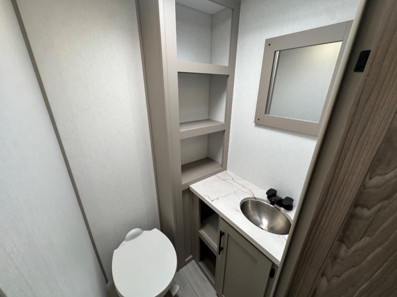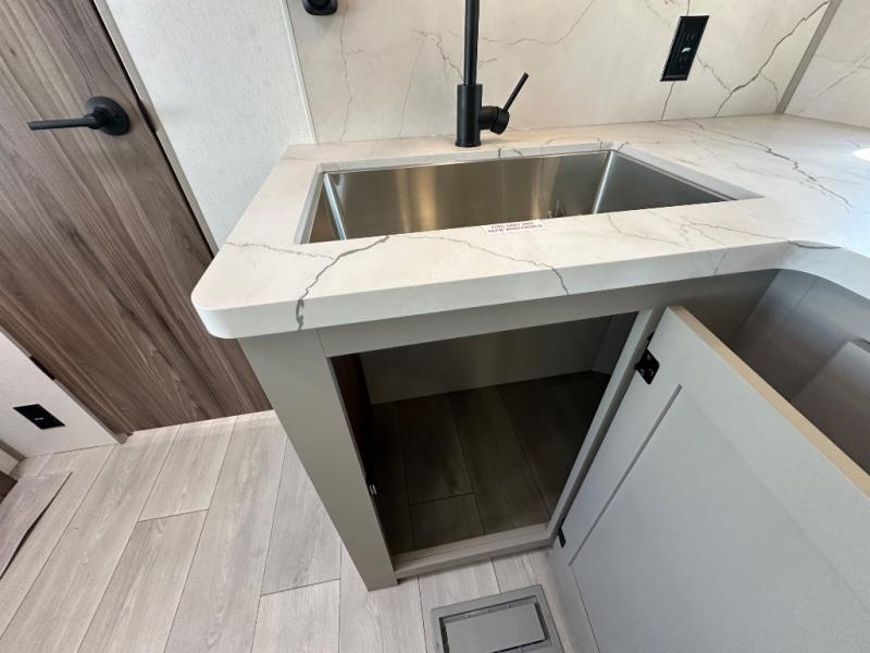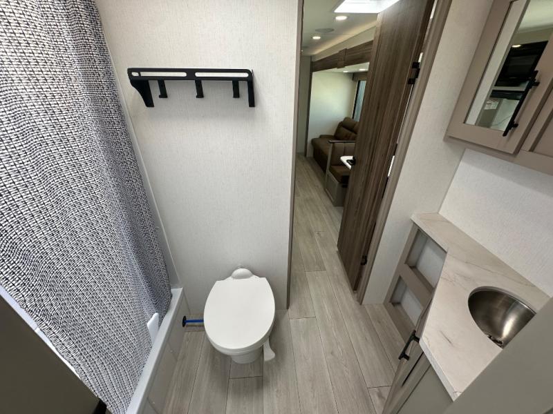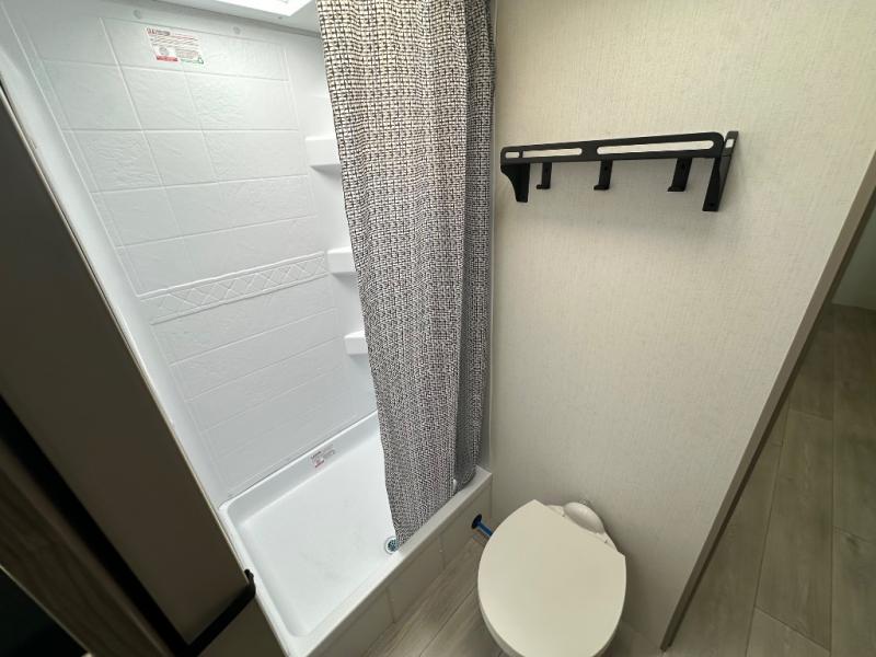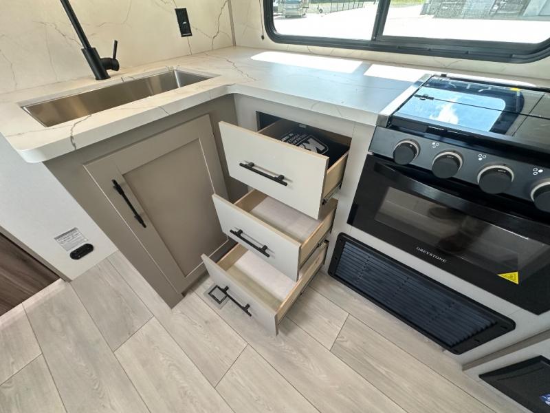 Your family will love this travel trailer. Sleep comfortably with your partner in the amazing queen bed situated in the front room, which has dual wardrobes perfect for storing your clothing. This unit is fitted with a full walk-through bathroom and a half bathroom in the rear part of the trailer, both ideal for refreshing yourself on a hot day. You can relax a little in the 70" sofa equipped with a 34" fireplace in front of it allowing you to enjoy a cozy atmosphere. You can also cook delicious meals in the incredible kitchen, fitted with a microwave, three cooktop burners, a walk-in pantry with coat hooks, a sink, a dinette, and a refrigerator, ideal for cooking any delicious dish. Finally, you will find an outdoor refrigerator and griddle excellent for cooking under the stars with your family, and a pass-through storage perfect for placing your stuff.