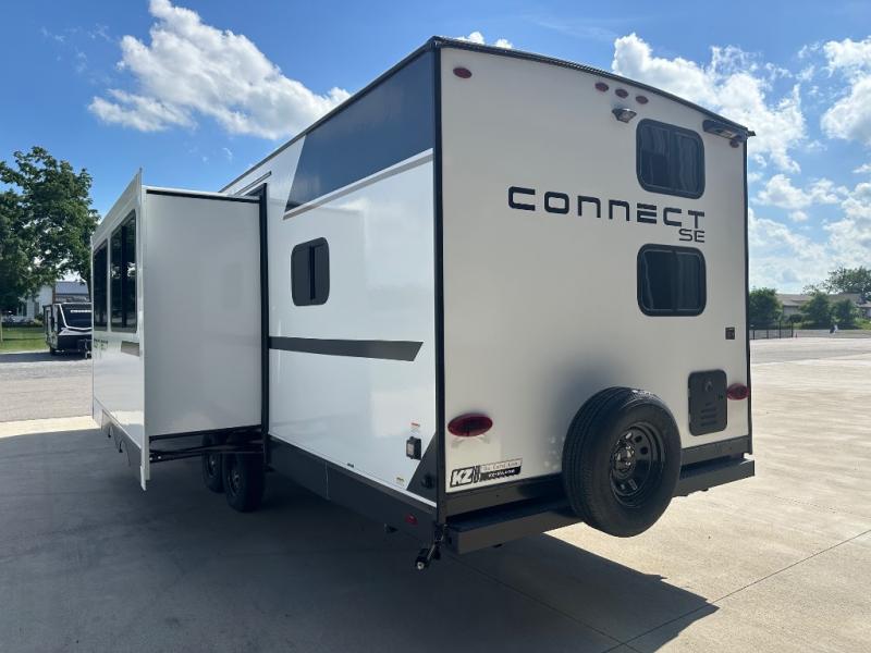 Each Connect SE travel trailer by KZ includes an NXG frame, which is a high quality, highly engineered frame that provides a lightweight yet strong foundation for your RV. The Climate package provides added insulation to extend your camping season year-round with a fully enclosed, insulated and heated underbelly to protect the tanks and pipes. Some top features include the 17-inch range with illuminated control knobs, the seamless countertops with a deep undermount stainless steel kitchen sink including a sink cover for added countertop space, and a black high-rise faucet. You will also enjoy the KZ Engage that is powered by OneControl to monitor and control the battery levels, the slide(s), the leveling system, the awning(s), plus the inside and outside lighting. Choose your favorite today!