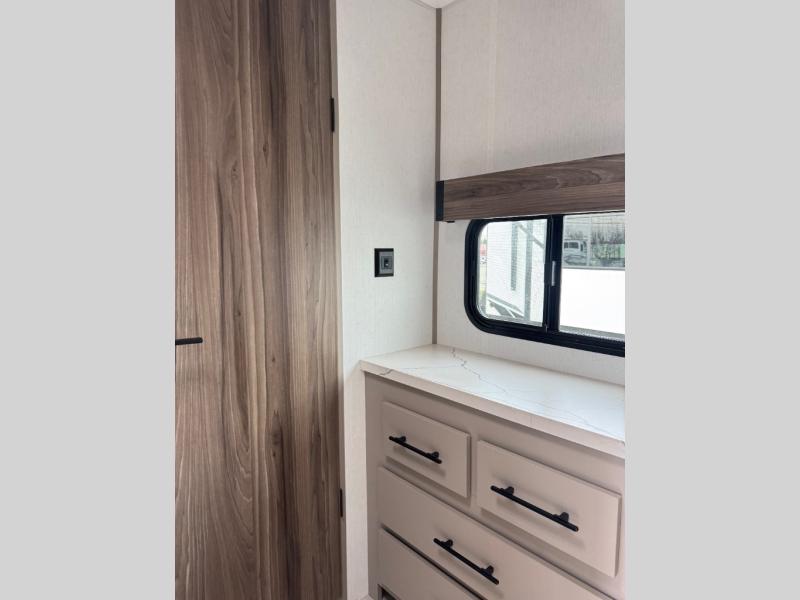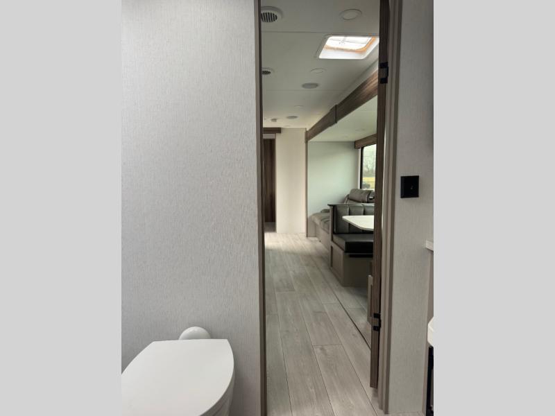 Your family will love this travel trailer. Sleep comfortably with your partner in the amazing queen bed situated in the front room, which has dual wardrobes perfect for storing your clothing. This unit is fitted with a full walk-through bathroom and a half bathroom in the rear part of the trailer, both ideal for refreshing yourself on a hot day. You can relax a little in the 70" sofa equipped with a 34" fireplace in front of it allowing you to enjoy a cozy atmosphere. You can also cook delicious meals in the incredible kitchen, fitted with a microwave, three cooktop burners, a walk-in pantry with coat hooks, a sink, a dinette, and a refrigerator, ideal for cooking any delicious dish. Finally, you will find an outdoor refrigerator and griddle excellent for cooking under the stars with your family, and a pass-through storage perfect for placing your stuff.