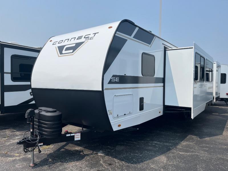 Each Connect SE travel trailer by KZ includes an NXG frame, which is a high quality, highly engineered frame that provides a lightweight yet strong foundation for your RV. The Climate package provides added insulation to extend your camping season year-round with a fully enclosed, insulated and heated underbelly to protect the tanks and pipes. Some top features include the 17-inch range with illuminated control knobs, the seamless countertops with a deep undermount stainless steel kitchen sink including a sink cover for added countertop space, and a black high-rise faucet. You will also enjoy the KZ Engage that is powered by OneControl to monitor and control the battery levels, the slide(s), the leveling system, the awning(s), plus the inside and outside lighting. Choose your favorite today!