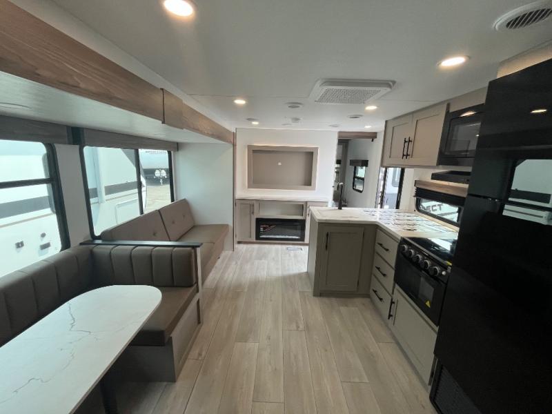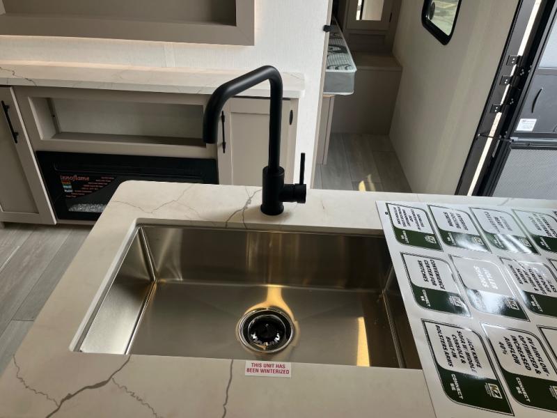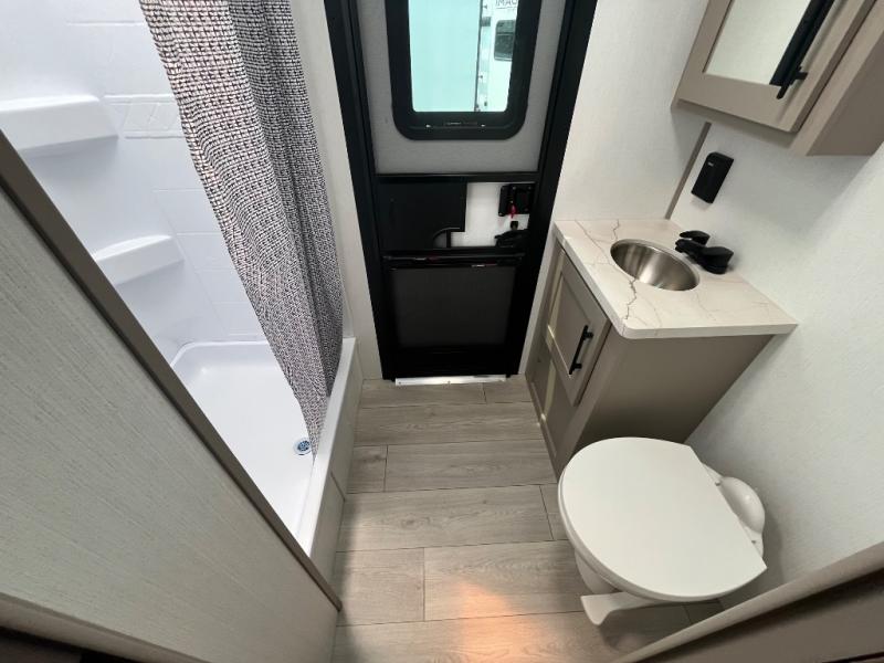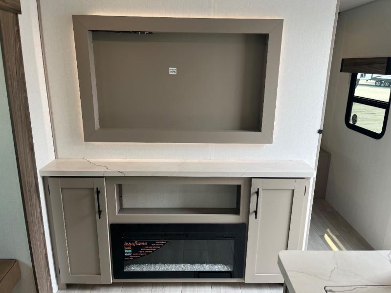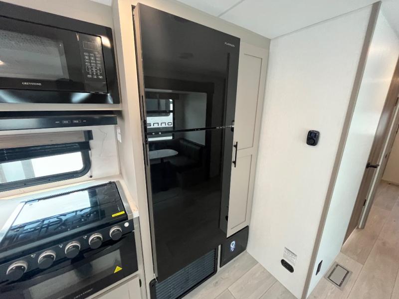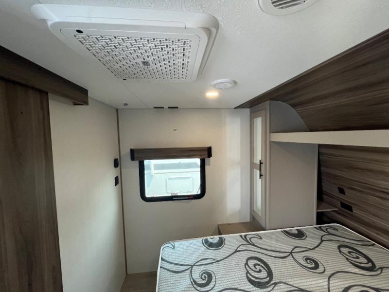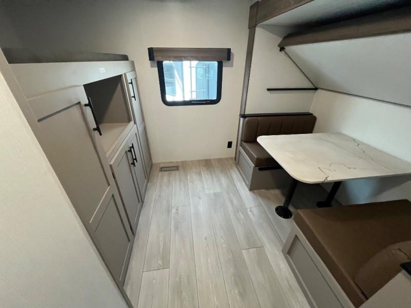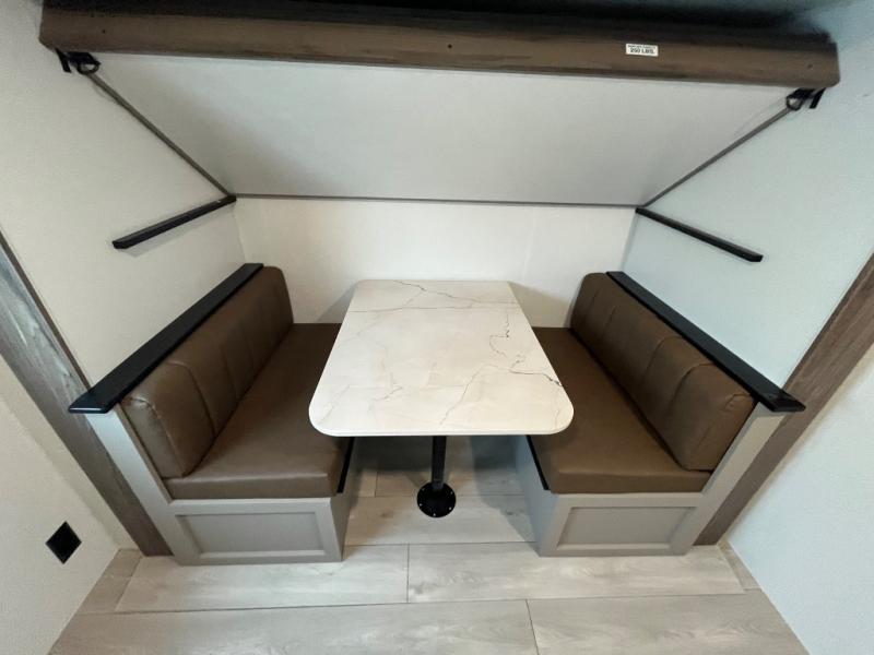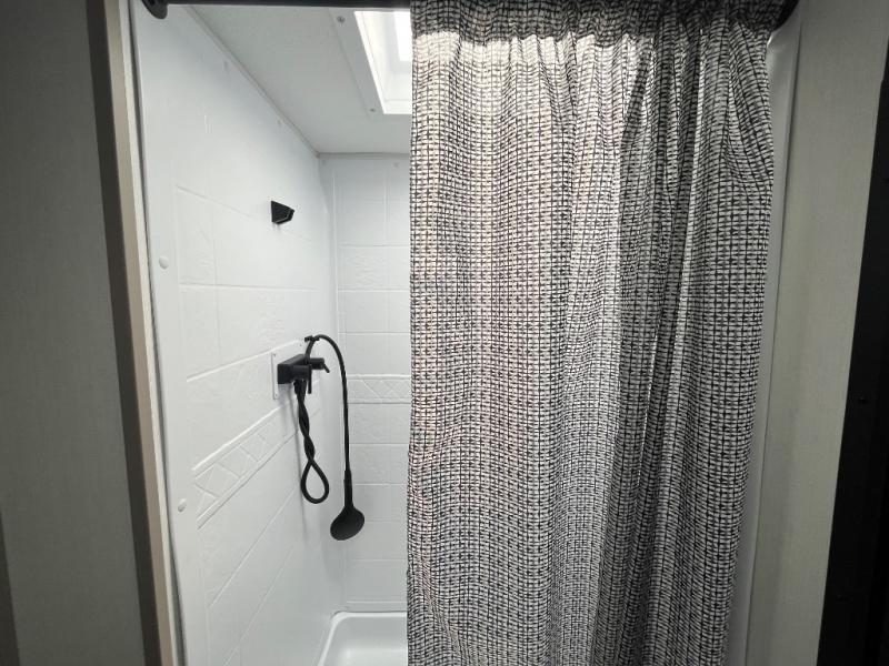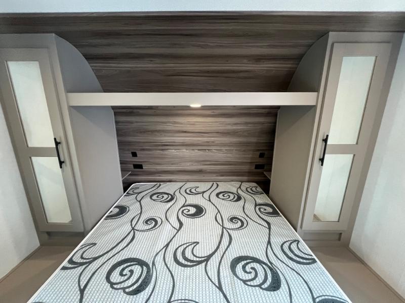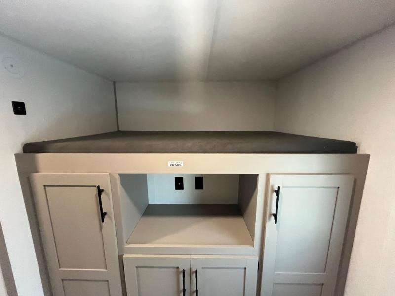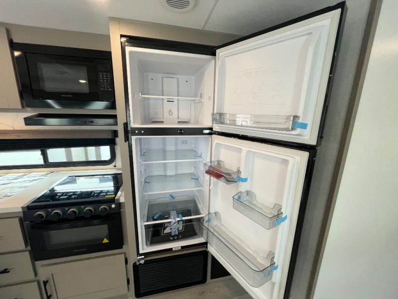 Your kids or your friends will love having their own privacy in the rear bunkhouse which offers two bunks and a dinette to play games or dine at, plus there is a closet for their storage. The full bathroom is conveniently located and includes the second exterior entry for quick and easy access to the fun happening outside. You will have your own private bedroom on the opposite side of the trailer, and it includes a walk-around queen bed, dual wardrobes and a sliding entry door. The main living and kitchen area is spacious with a large slide out, and you can relax on the 64" sofa or the 80" U-shaped dinette while the cook makes meals with full amenities including a 10 cu. ft. 12V refrigerator and a pantry for food storage.