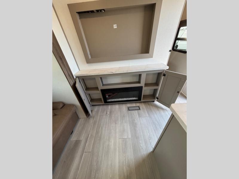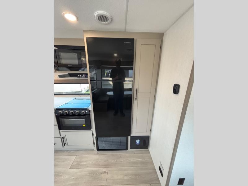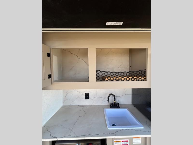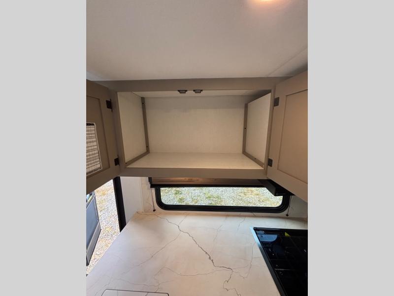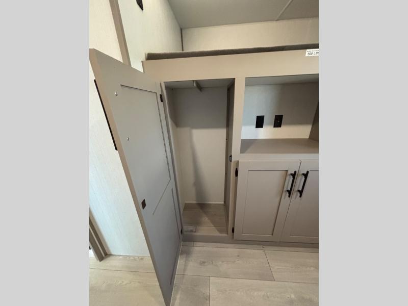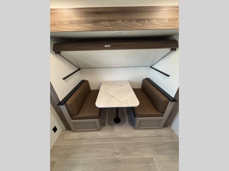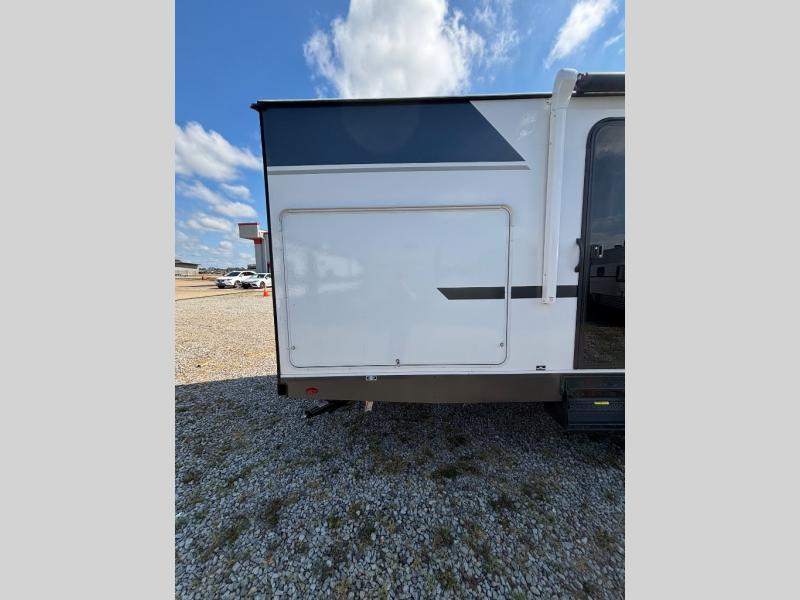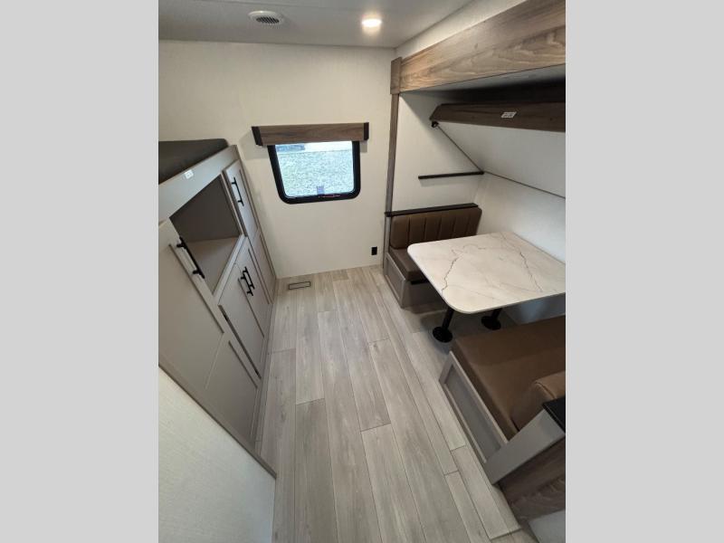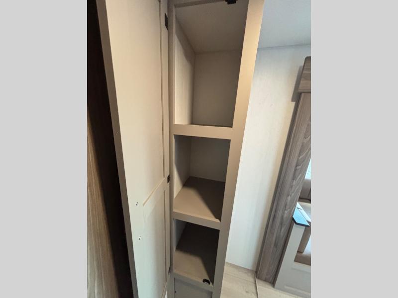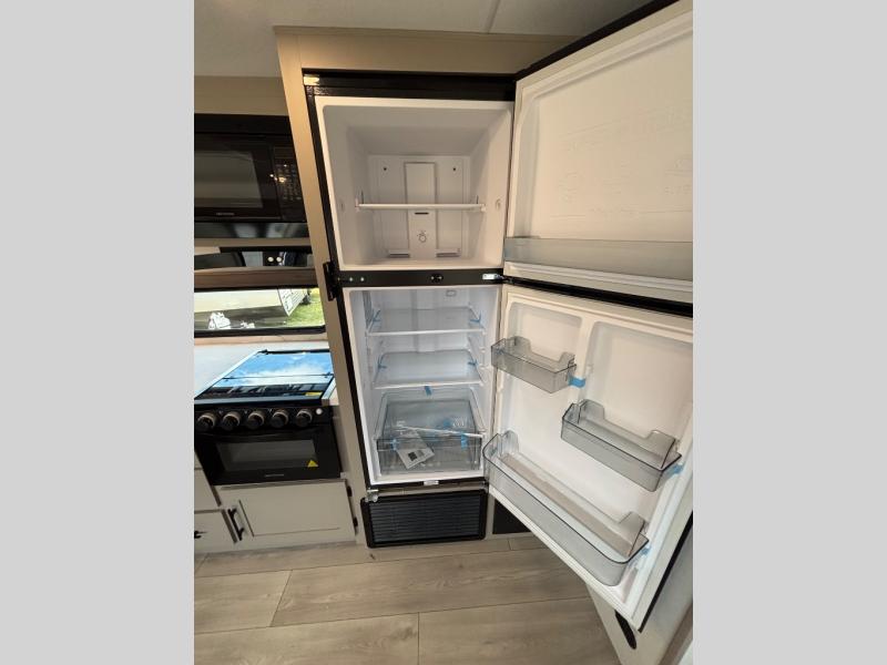 Your kids or your friends will love having their own privacy in the rear bunkhouse which offers two bunks and a dinette to play games or dine at, plus there is a closet for their storage. The full bathroom is conveniently located and includes the second exterior entry for quick and easy access to the fun happening outside. You will have your own private bedroom on the opposite side of the trailer, and it includes a walk-around queen bed, dual wardrobes and a sliding entry door. The main living and kitchen area is spacious with a large slide out, and you can relax on the 64" sofa or the 80" U-shaped dinette while the cook makes meals with full amenities including a 10 cu. ft. 12V refrigerator and a pantry for food storage.
