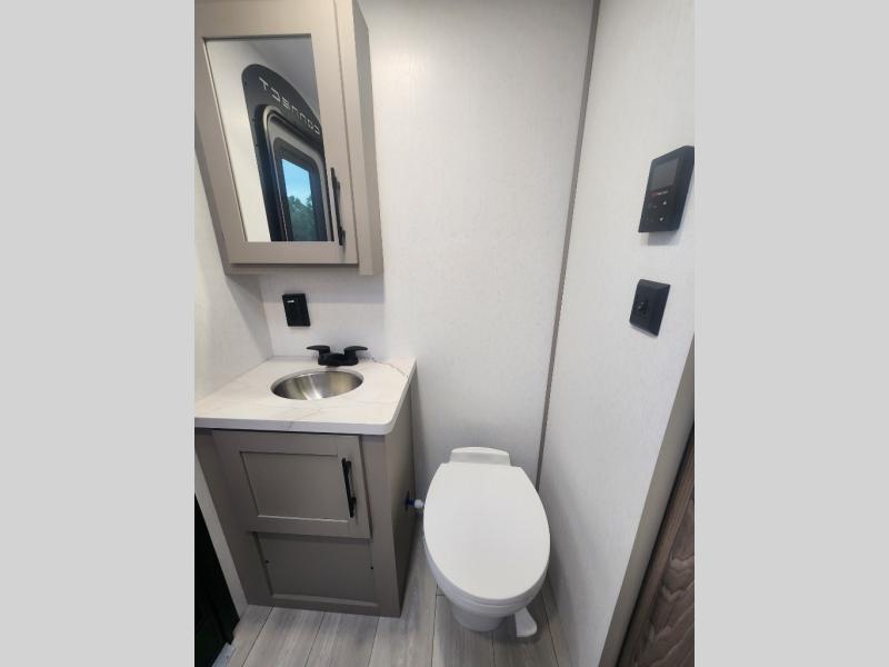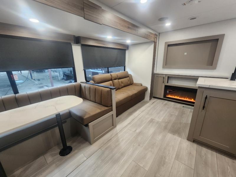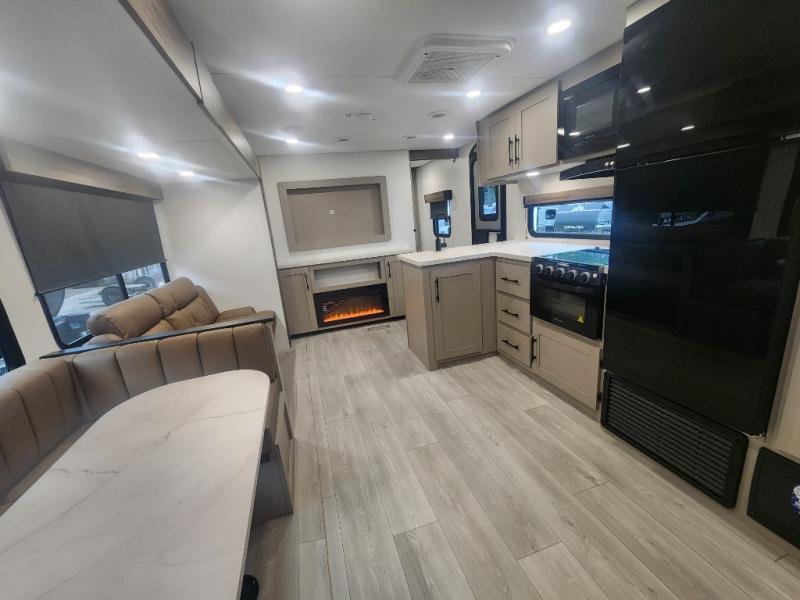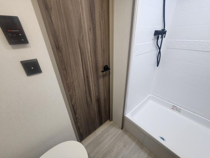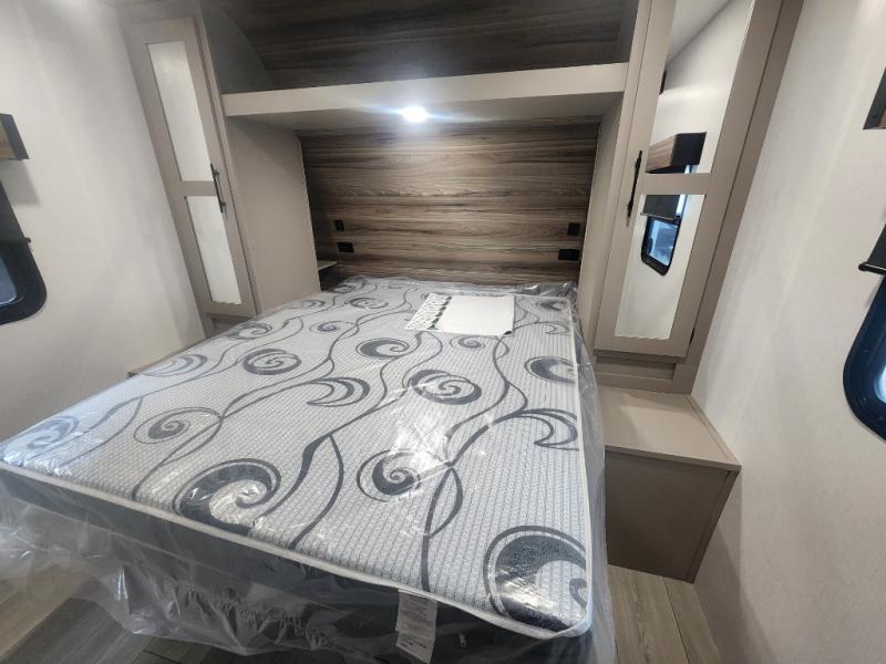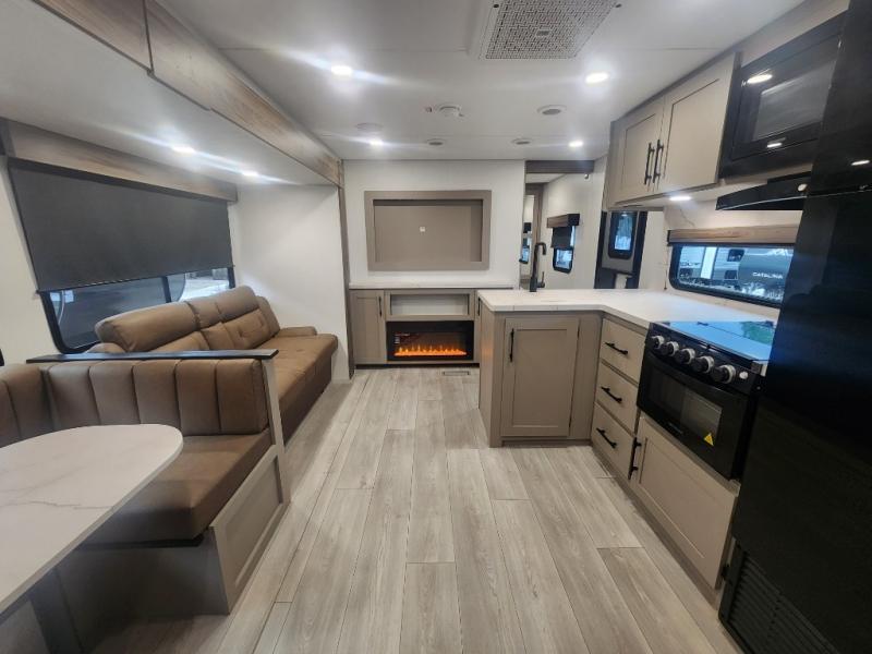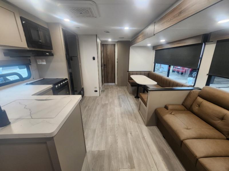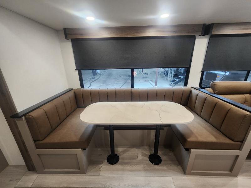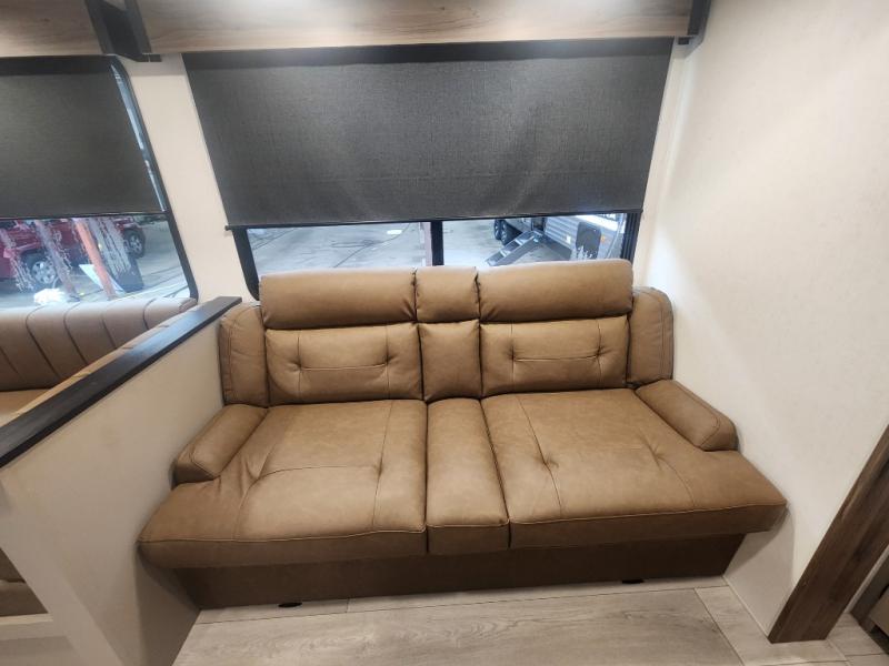 Your kids or your friends will love having their own privacy in the rear bunkhouse which offers two bunks and a dinette to play games or dine at, plus there is a closet for their storage. The full bathroom is conveniently located and includes the second exterior entry for quick and easy access to the fun happening outside. You will have your own private bedroom on the opposite side of the trailer, and it includes a walk-around queen bed, dual wardrobes and a sliding entry door. The main living and kitchen area is spacious with a large slide out, and you can relax on the 64" sofa or the 80" U-shaped dinette while the cook makes meals with full amenities including a 10 cu. ft. 12V refrigerator and a pantry for food storage.