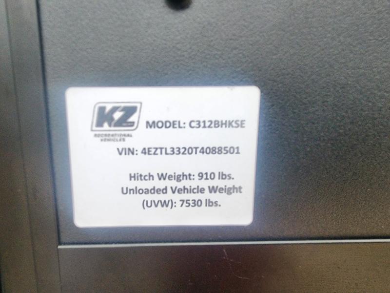 KZ Connect SE travel trailer C312BHKSE highlights: