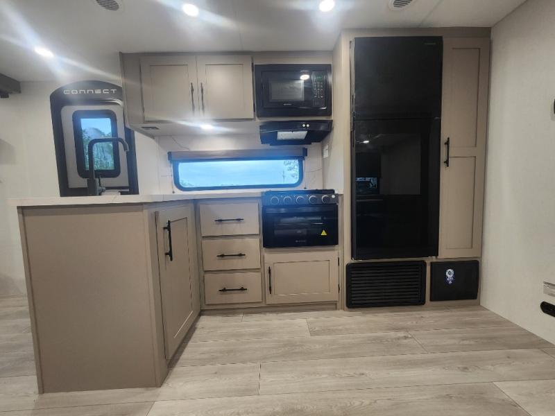 Each Connect SE travel trailer by KZ includes an NXG frame, which is a high quality, highly engineered frame that provides a lightweight yet strong foundation for your RV. The Climate package provides added insulation to extend your camping season year-round with a fully enclosed, insulated and heated underbelly to protect the tanks and pipes. Some top features include the 17-inch range with illuminated control knobs, the seamless countertops with a deep undermount stainless steel kitchen sink including a sink cover for added countertop space, and a black high-rise faucet. You will also enjoy the KZ Engage that is powered by OneControl to monitor and control the battery levels, the slide(s), the leveling system, the awning(s), plus the inside and outside lighting. Choose your favorite today!