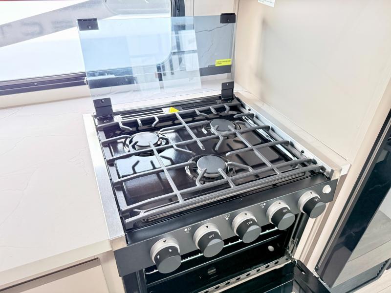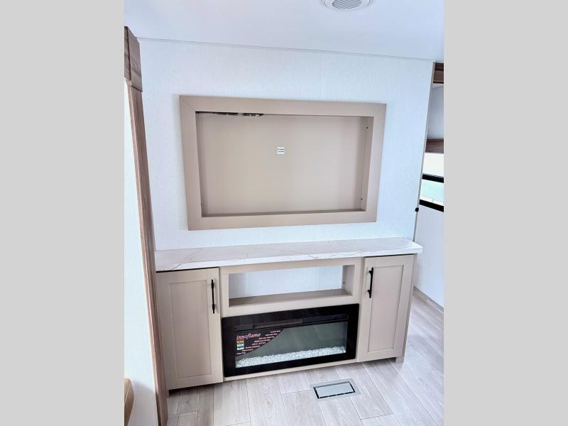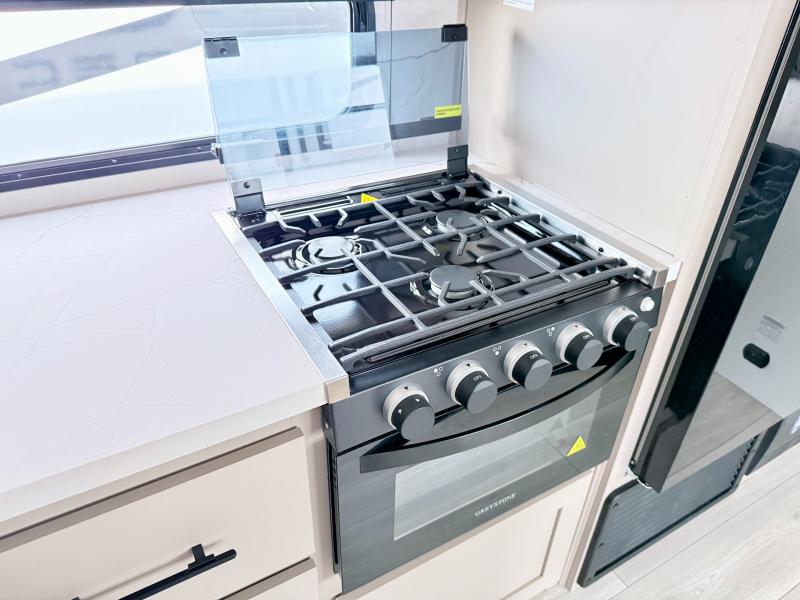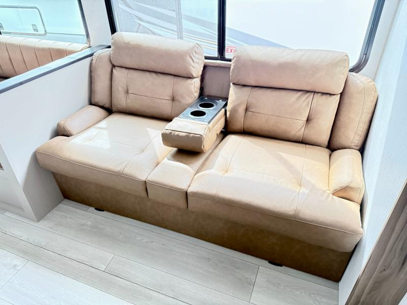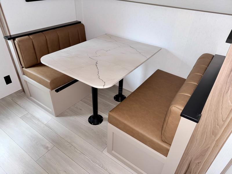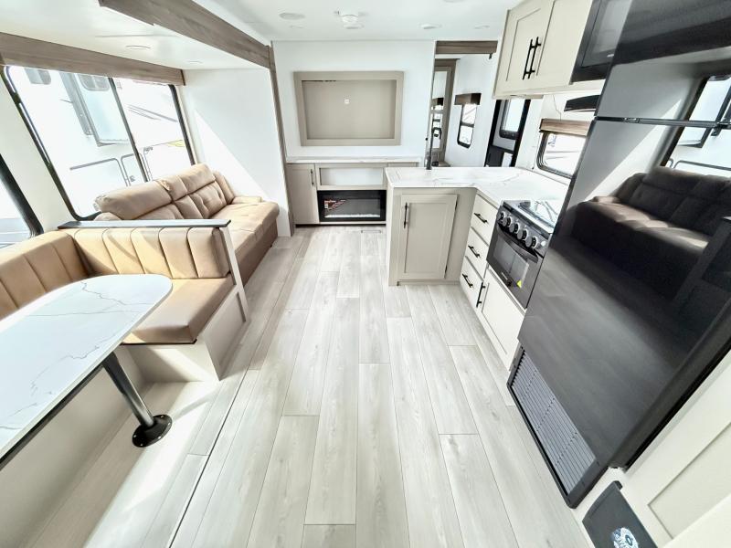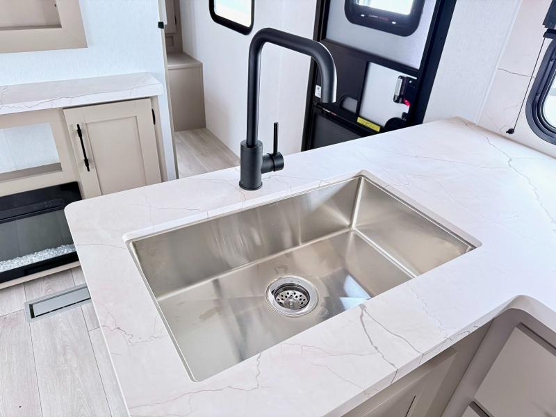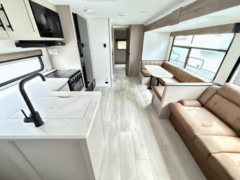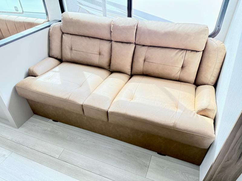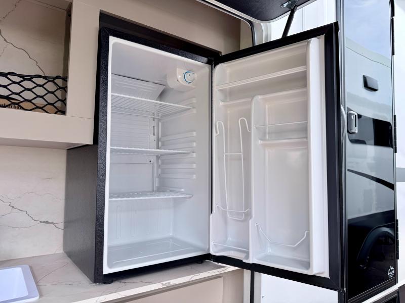 Your kids or your friends will love having their own privacy in the rear bunkhouse which offers two bunks and a dinette to play games or dine at, plus there is a closet for their storage. The full bathroom is conveniently located and includes the second exterior entry for quick and easy access to the fun happening outside. You will have your own private bedroom on the opposite side of the trailer, and it includes a walk-around queen bed, dual wardrobes and a sliding entry door. The main living and kitchen area is spacious with a large slide out, and you can relax on the 64" sofa or the 80" U-shaped dinette while the cook makes meals with full amenities including a 10 cu. ft. 12V refrigerator and a pantry for food storage.