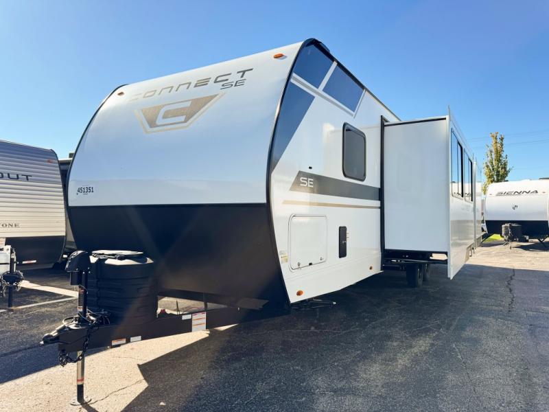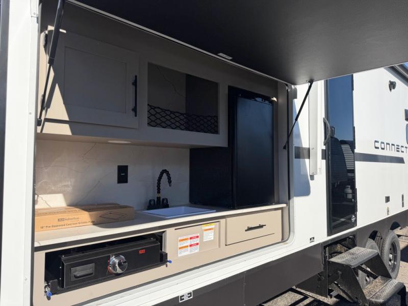 Each Connect SE travel trailer by KZ includes an NXG frame, which is a high quality, highly engineered frame that provides a lightweight yet strong foundation for your RV. The Climate package provides added insulation to extend your camping season year-round with a fully enclosed, insulated and heated underbelly to protect the tanks and pipes. Some top features include the 17-inch range with illuminated control knobs, the seamless countertops with a deep undermount stainless steel kitchen sink including a sink cover for added countertop space, and a black high-rise faucet. You will also enjoy the KZ Engage that is powered by OneControl to monitor and control the battery levels, the slide(s), the leveling system, the awning(s), plus the inside and outside lighting. Choose your favorite today!