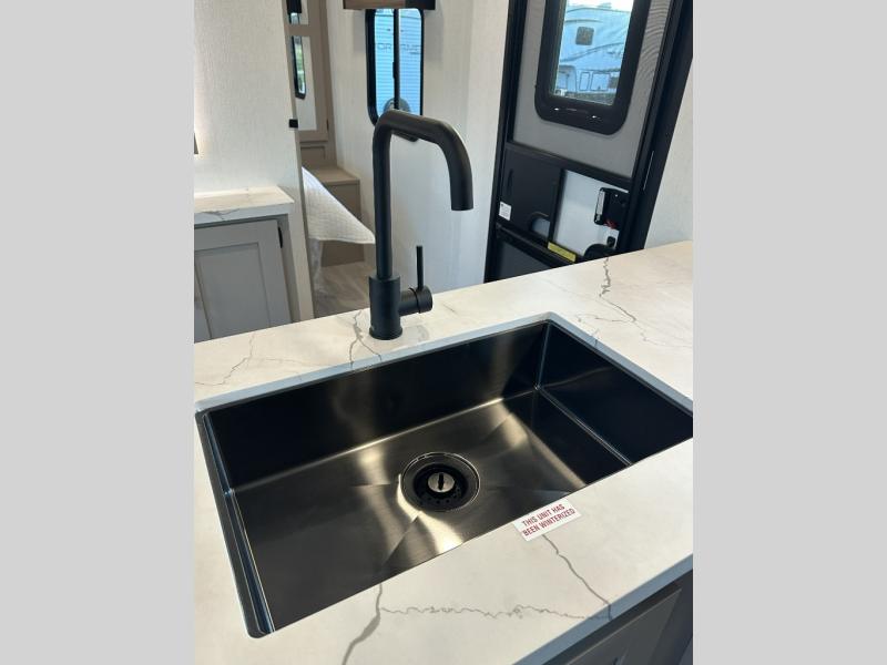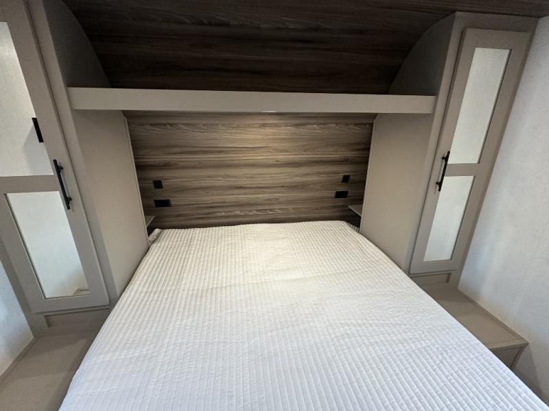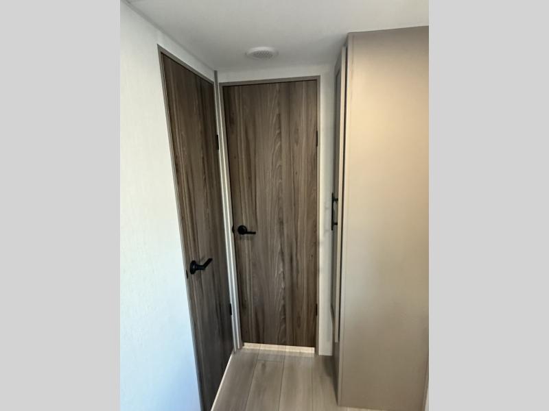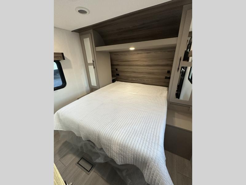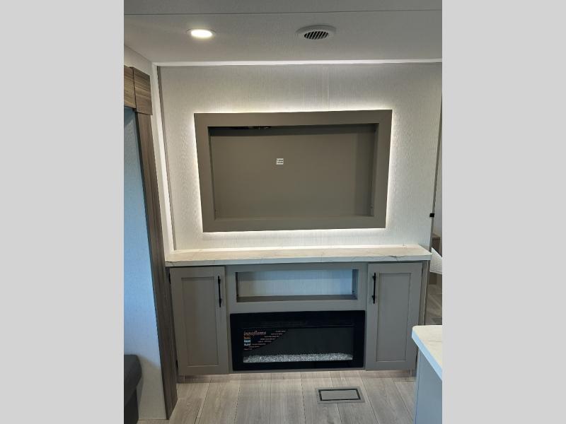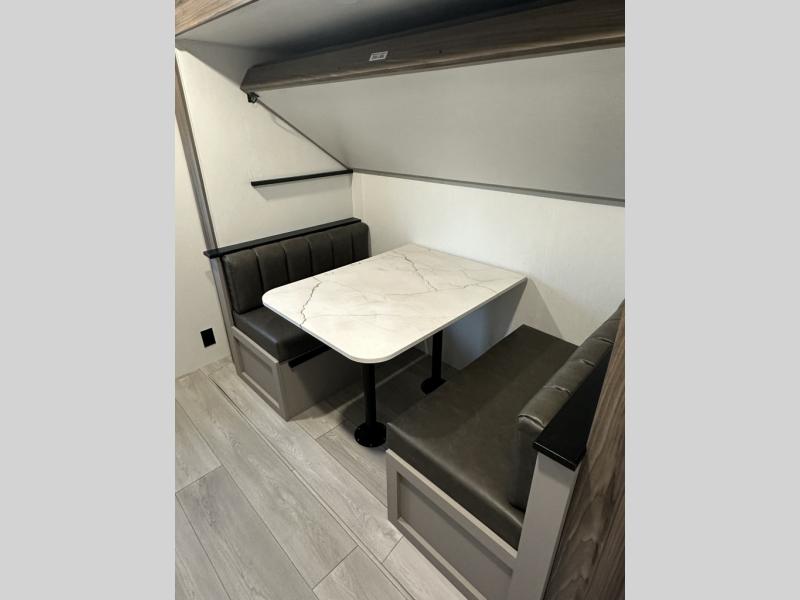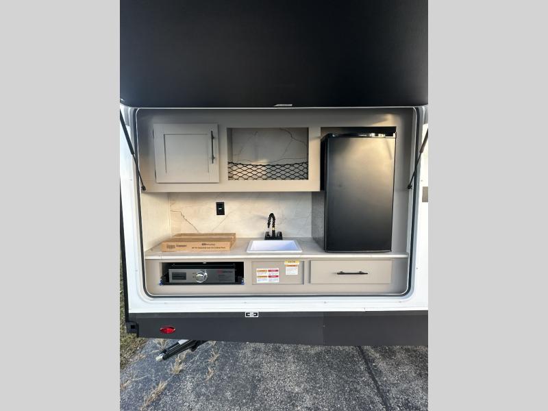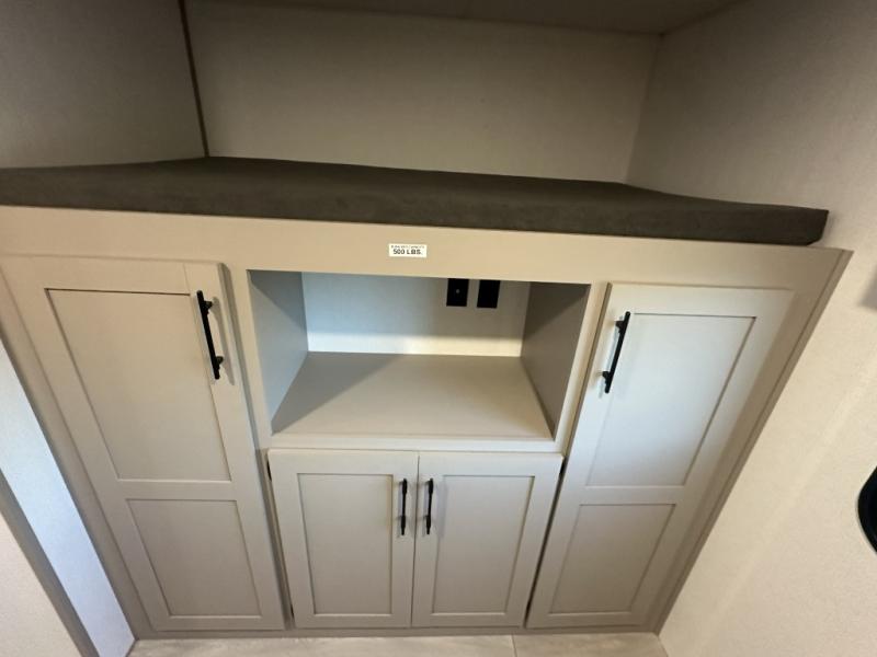 Your kids or your friends will love having their own privacy in the rear bunkhouse which offers two bunks and a dinette to play games or dine at, plus there is a closet for their storage. The full bathroom is conveniently located and includes the second exterior entry for quick and easy access to the fun happening outside. You will have your own private bedroom on the opposite side of the trailer, and it includes a walk-around queen bed, dual wardrobes and a sliding entry door. The main living and kitchen area is spacious with a large slide out, and you can relax on the 64" sofa or the 80" U-shaped dinette while the cook makes meals with full amenities including a 10 cu. ft. 12V refrigerator and a pantry for food storage.