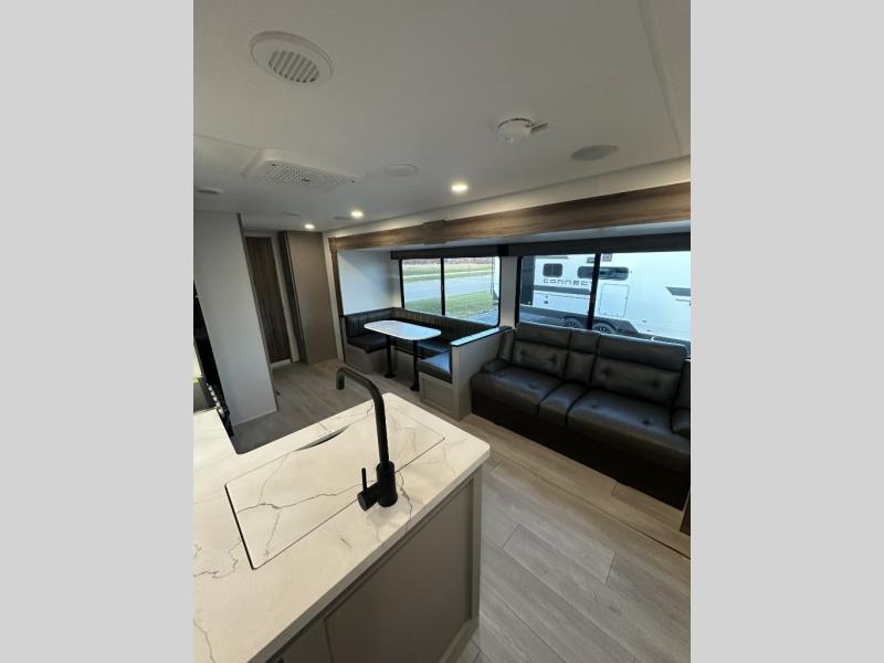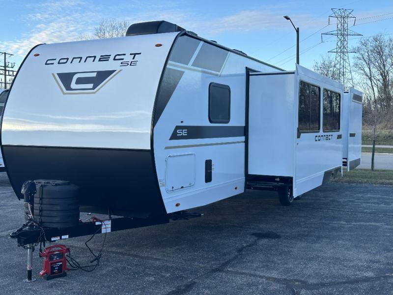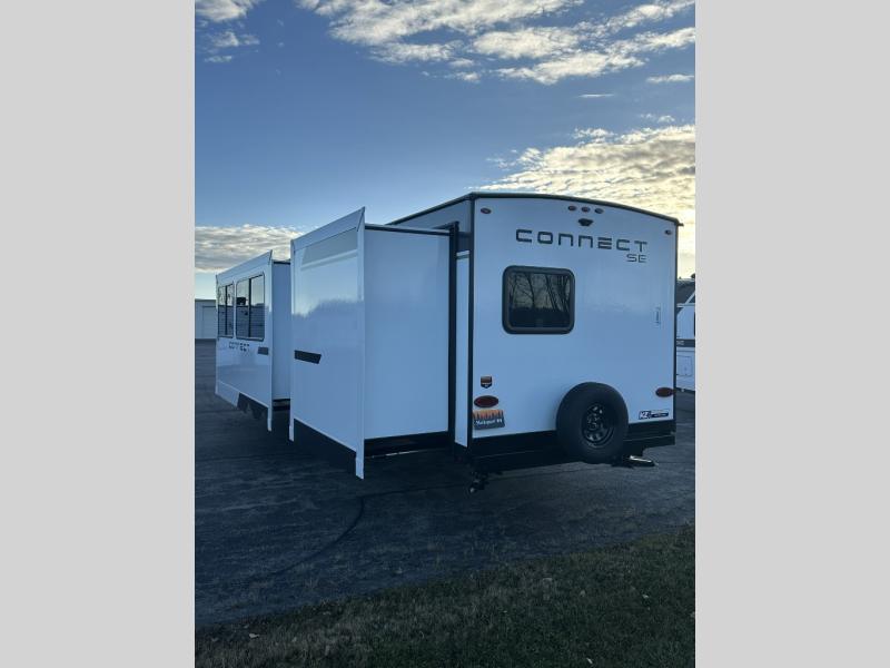 Each Connect SE travel trailer by KZ includes an NXG frame, which is a high quality, highly engineered frame that provides a lightweight yet strong foundation for your RV. The Climate package provides added insulation to extend your camping season year-round with a fully enclosed, insulated and heated underbelly to protect the tanks and pipes. Some top features include the 17-inch range with illuminated control knobs, the seamless countertops with a deep undermount stainless steel kitchen sink including a sink cover for added countertop space, and a black high-rise faucet. You will also enjoy the KZ Engage that is powered by OneControl to monitor and control the battery levels, the slide(s), the leveling system, the awning(s), plus the inside and outside lighting. Choose your favorite today!