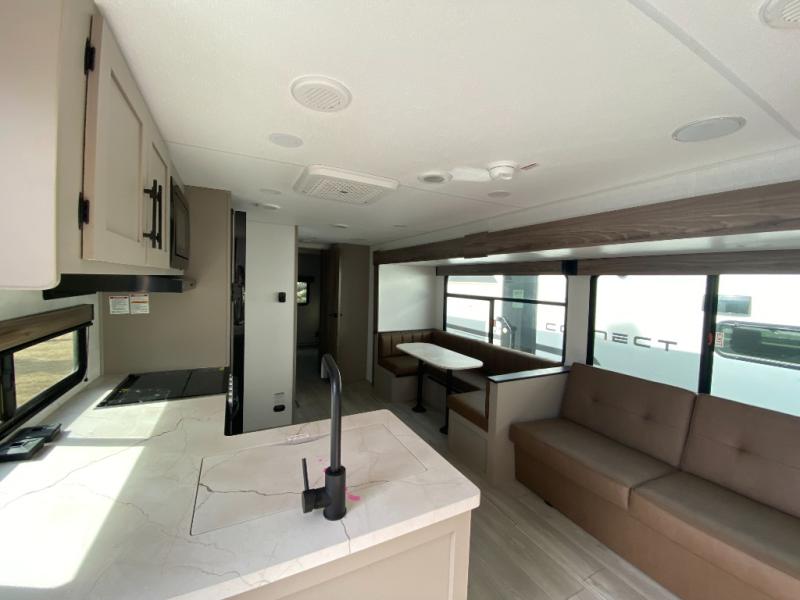 Each Connect SE travel trailer by KZ includes an NXG frame, which is a high quality, highly engineered frame that provides a lightweight yet strong foundation for your RV. The Climate package provides added insulation to extend your camping season year-round with a fully enclosed, insulated and heated underbelly to protect the tanks and pipes. Some top features include the 17-inch range with illuminated control knobs, the seamless countertops with a deep undermount stainless steel kitchen sink including a sink cover for added countertop space, and a black high-rise faucet. You will also enjoy the KZ Engage that is powered by OneControl to monitor and control the battery levels, the slide(s), the leveling system, the awning(s), plus the inside and outside lighting. Choose your favorite today!