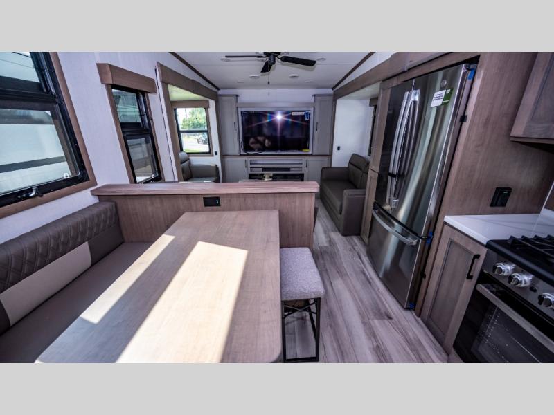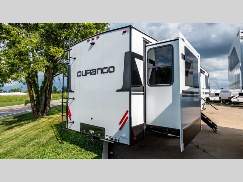 Explore the possibilities with this new Kz Durango 326RLT Fifth Wheel. Perfect for family adventures or weekend getaways. Enjoy spacious living and comfortable sleeping arrangements while traveling.