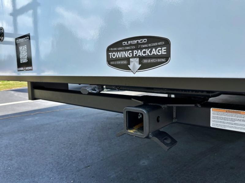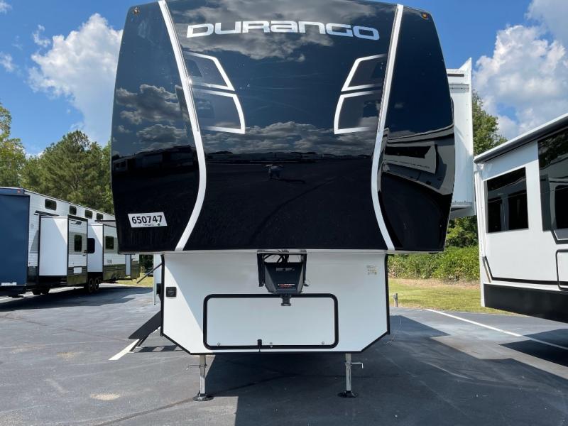 Enjoy full time living, an affordable price, and a wide body construction for more living space with every one of these KZ Durango light high-profile fifth wheels! These luxury units can be used all year round with the all-weather insulation package, the 3" x 14" foam-core in-floor straight-line heating system with a 35,000 BTU furnace, and the 15,000 BTU ducted roof A/C which optimizes the airflow by an average of 40% for better performance, cooling time, and reduction of noise. A few other construction features you will appreciate include a one piece, seamless walk-on Tufflex roofing material, Pex® in-floor heated waterlines, and a Lamilux® gelcoat fiberglass exterior. Inside, blancher maple & morel fog cabinetry , a king size bed, and smart TVs will have you feeling like you never left home!
