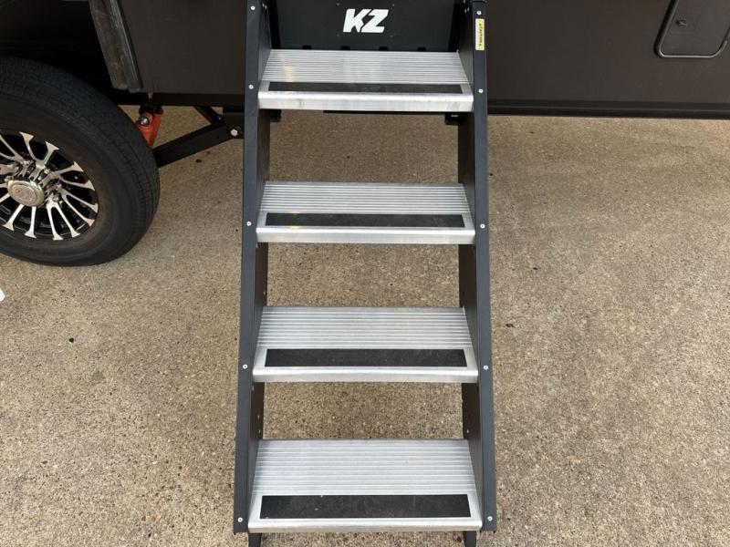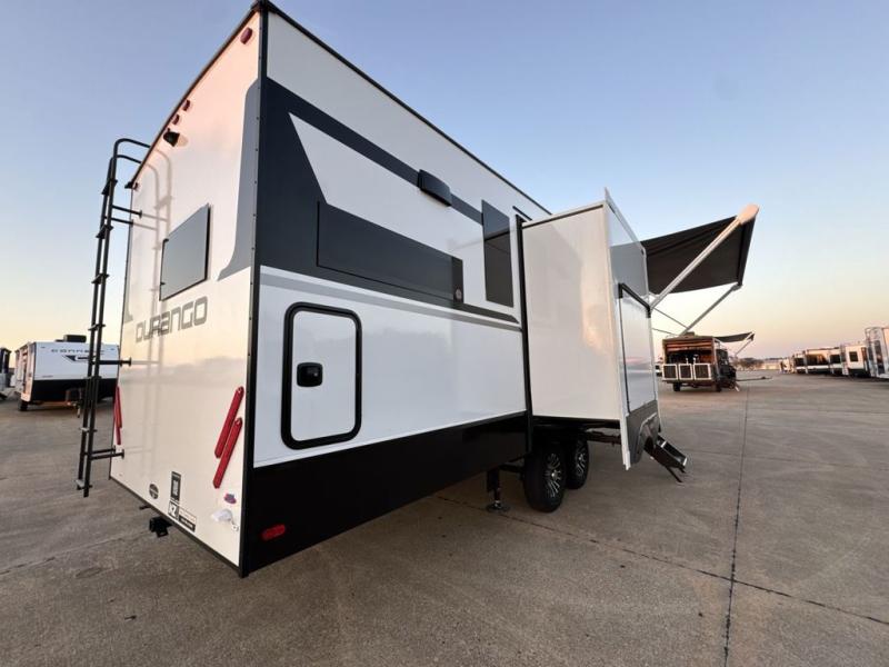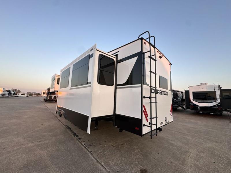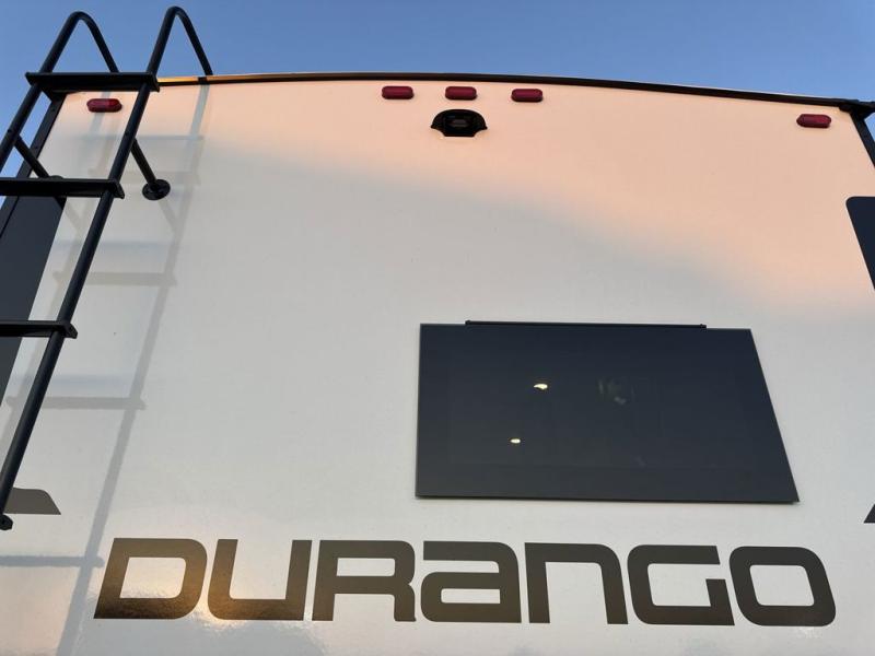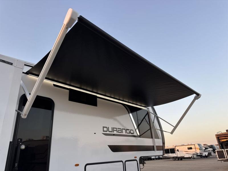 Enjoy full time living, an affordable price, and a wide body construction for more living space with every one of these KZ Durango light high-profile fifth wheels! These luxury units can be used all year round with the all-weather insulation package, the 3" x 14" foam-core in-floor straight-line heating system with a 35,000 BTU furnace, and the 15,000 BTU ducted roof A/C which optimizes the airflow by an average of 40% for better performance, cooling time, and reduction of noise. A few other construction features you will appreciate include a one piece, seamless walk-on Tufflex roofing material, Pex® in-floor heated waterlines, and a Lamilux® gelcoat fiberglass exterior. Inside, blancher maple & morel fog cabinetry , a king size bed, and smart TVs will have you feeling like you never left home!