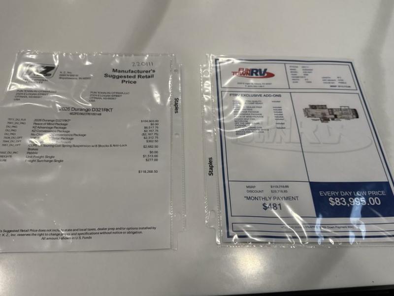 New 2026 KZ Durango D321RKT Fifth Wheel