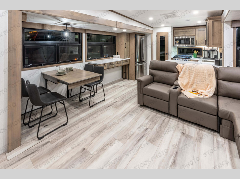 Enjoy full time living, an affordable price, and a wide body construction for more living space with every one of these KZ Durango light high-profile fifth wheels! These luxury units can be used all year round with the all-weather insulation package, the 3" x 14" foam-core in-floor straight-line heating system with a 35,000 BTU furnace, and the 15,000 BTU ducted roof A/C which optimizes the airflow by an average of 40% for better performance, cooling time, and reduction of noise. A few other construction features you will appreciate include a one piece, seamless walk-on Tufflex roofing material, Pex® in-floor heated waterlines, and a Lamilux® gelcoat fiberglass exterior. Inside, blancher maple & morel fog cabinetry , a king size bed, and smart TVs will have you feeling like you never left home!
