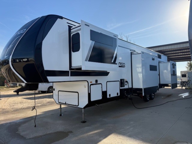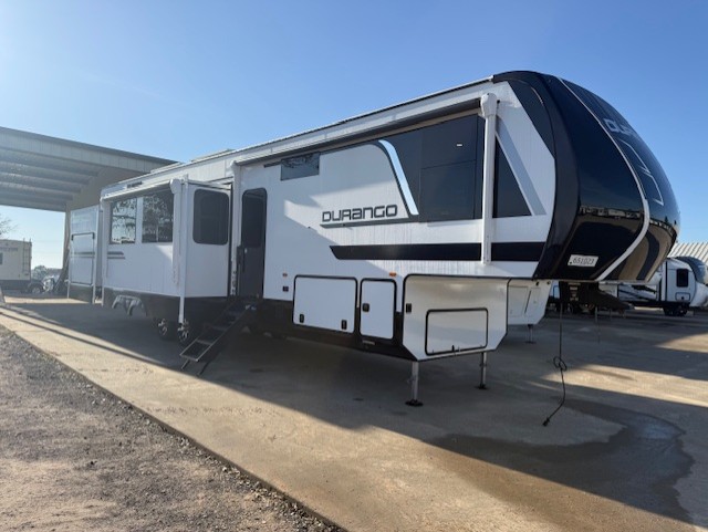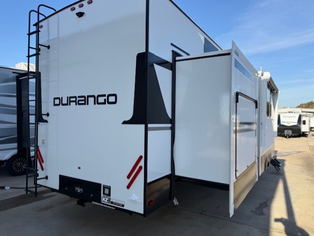 Enjoy full time living, an affordable price, and a wide body construction for more living space with every one of these KZ Durango light high-profile fifth wheels! These luxury units can be used all year round with the all-weather insulation package, the 3" x 14" foam-core in-floor straight-line heating system with a 35,000 BTU furnace, and the 15,000 BTU ducted roof A/C which optimizes the airflow by an average of 40% for better performance, cooling time, and reduction of noise. A few other construction features you will appreciate include a one piece, seamless walk-on Tufflex roofing material, Pex® in-floor heated waterlines, and a Lamilux® gelcoat fiberglass exterior. Inside, blancher maple & morel fog cabinetry , a king size bed, and smart TVs will have you feeling like you never left home!