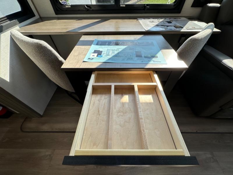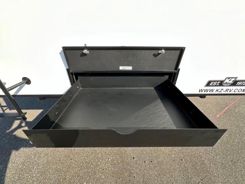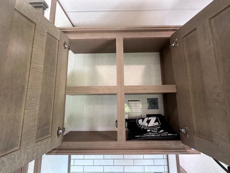 With any KZ Durango Gold full-time luxury fifth wheel, you will enjoy the new Blancher Maple and Morel Fog cabinetry, stainless steel appliances such as a 30" convection microwave and 24" oven with a four burner range, plus a stainless dishwasher. Other top features include an electric tilt bed with Serta Comfort foam king mattress, three 15K A/C units, plus theater seating with powered recline, heat and massage features. You will also appreciate a handy central vacuum system with attachments that stores out of sight. Each Durango Gold is constructed with six-sided aluminum framing, and has a heated, insulated and an enclosed underbelly. It is also constructed with Tufflex roofing material which is flexible, puncture resistant, and reflective. The now standard "Off The Grid" solar package includes two 200W solar panels, a 30A MPPT solar charge controller, and a 2,000W True Sine Wave inverter for off-grid capabilities. If you're wanting to go completely off-grid, you might want to choose the optional Boondocker Solar System with even more features that won't require you to be close to electric hookups!