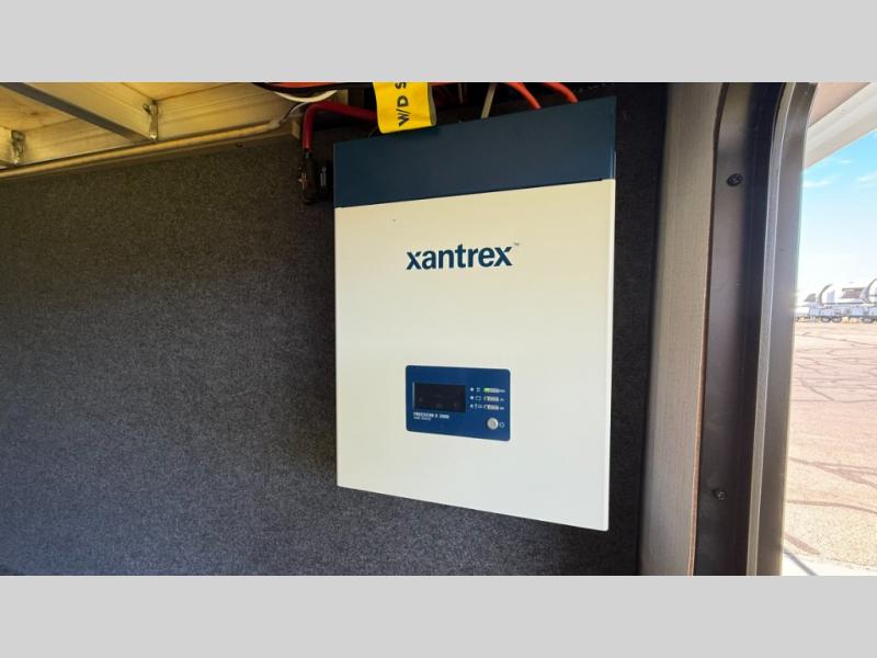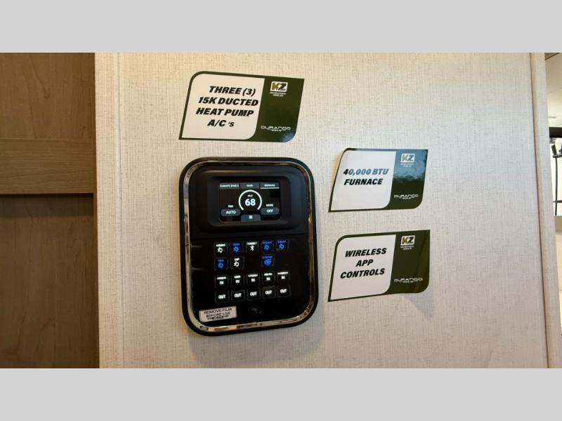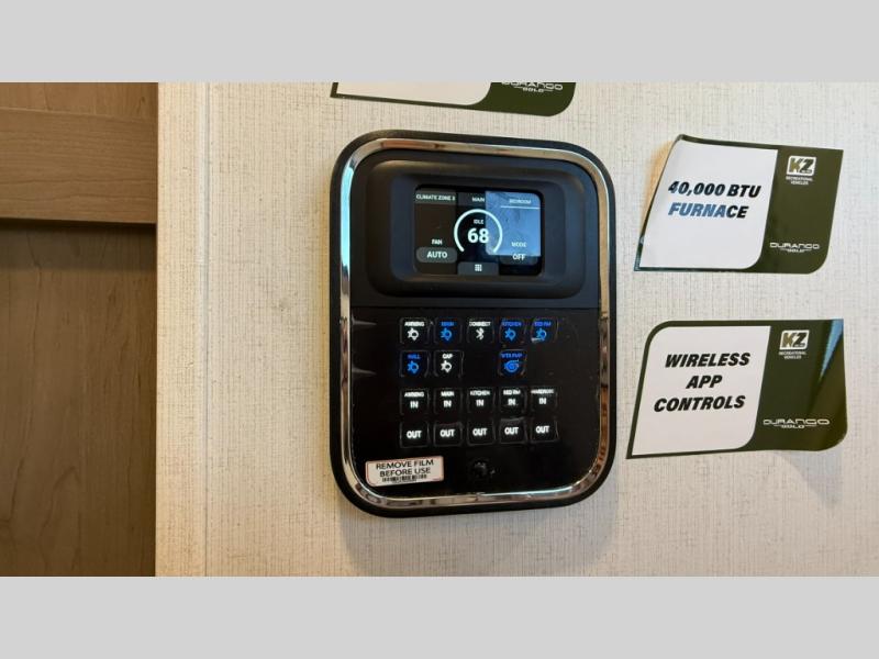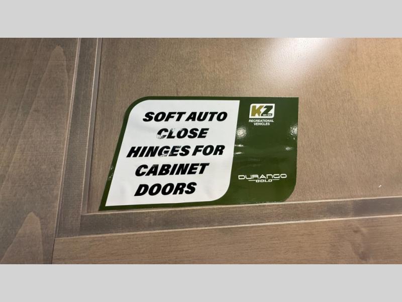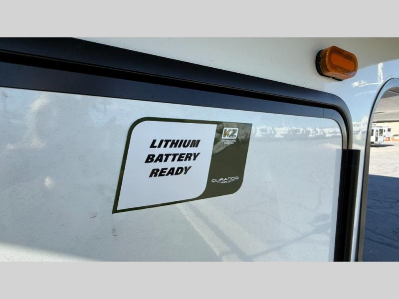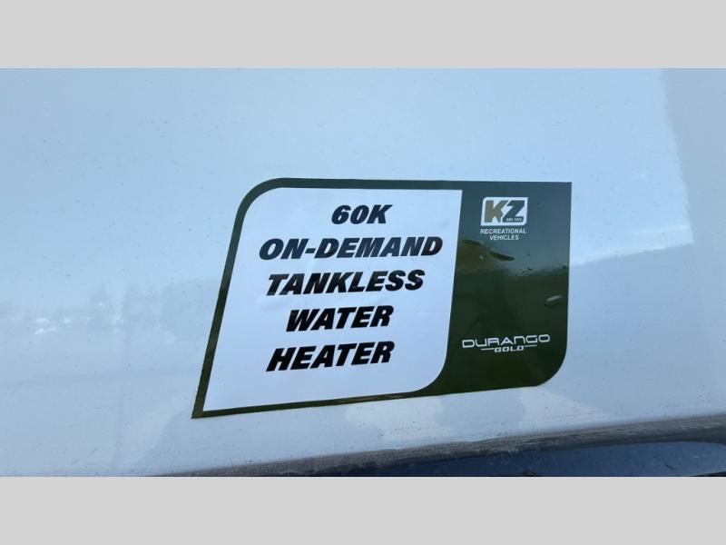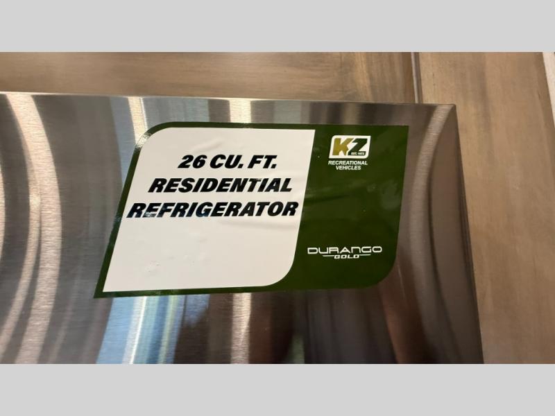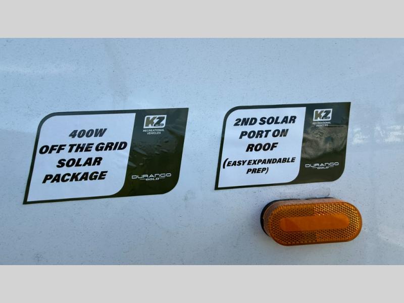 With any KZ Durango Gold full-time luxury fifth wheel, you will enjoy the new Blancher Maple and Morel Fog cabinetry, stainless steel appliances such as a 30" convection microwave and 24" oven with a four burner range, plus a stainless dishwasher. Other top features include an electric tilt bed with Serta Comfort foam king mattress, three 15K A/C units, plus theater seating with powered recline, heat and massage features. You will also appreciate a handy central vacuum system with attachments that stores out of sight. Each Durango Gold is constructed with six-sided aluminum framing, and has a heated, insulated and an enclosed underbelly. It is also constructed with Tufflex roofing material which is flexible, puncture resistant, and reflective. The now standard "Off The Grid" solar package includes two 200W solar panels, a 30A MPPT solar charge controller, and a 2,000W True Sine Wave inverter for off-grid capabilities. If you're wanting to go completely off-grid, you might want to choose the optional Boondocker Solar System with even more features that won't require you to be close to electric hookups!