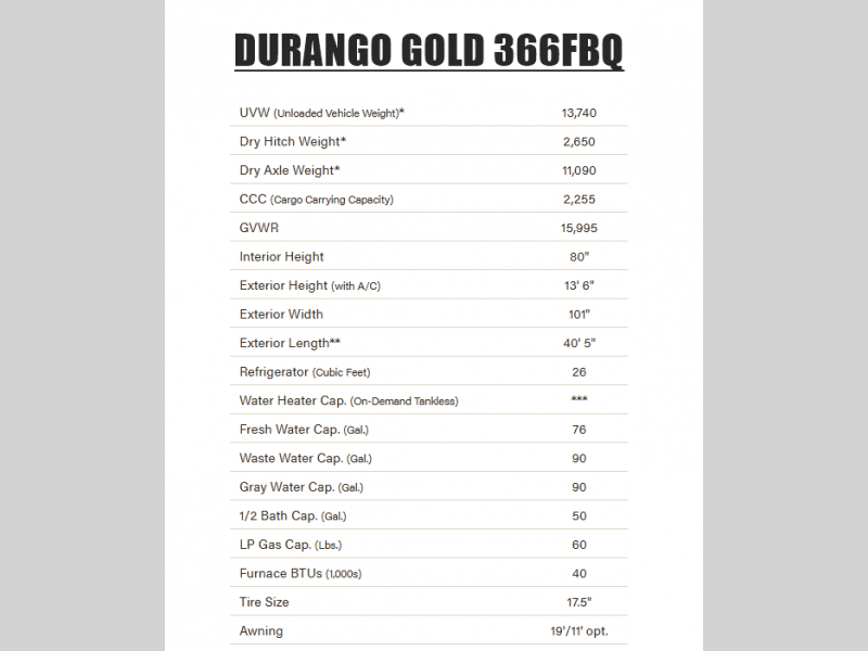 KZ Durango Gold fifth wheel G366FBQ highlights: