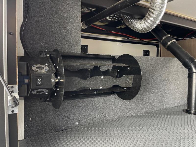 With any KZ Durango Gold full-time luxury fifth wheel, you will enjoy the new Blancher Maple and Morel Fog cabinetry, stainless steel appliances such as a 30" convection microwave and 24" oven with a four burner range, plus a stainless dishwasher. Other top features include an electric tilt bed with Serta Comfort foam king mattress, three 15K A/C units, plus theater seating with powered recline, heat and massage features. You will also appreciate a handy central vacuum system with attachments that stores out of sight. Each Durango Gold is constructed with six-sided aluminum framing, and has a heated, insulated and an enclosed underbelly. It is also constructed with Tufflex roofing material which is flexible, puncture resistant, and reflective. The now standard "Off The Grid" solar package includes two 200W solar panels, a 30A MPPT solar charge controller, and a 2,000W True Sine Wave inverter for off-grid capabilities. If you're wanting to go completely off-grid, you might want to choose the optional Boondocker Solar System with even more features that won't require you to be close to electric hookups!