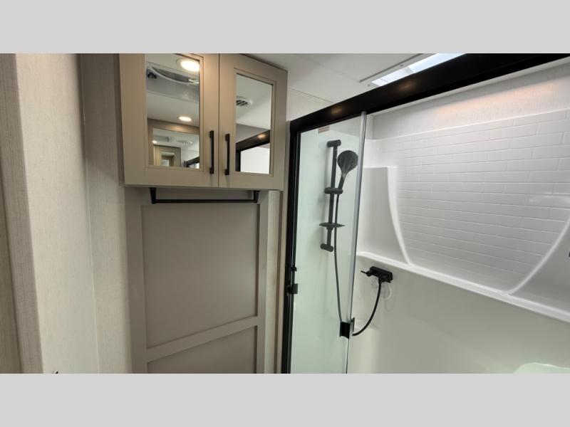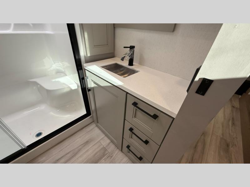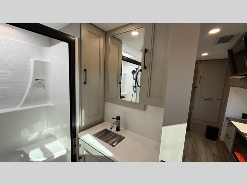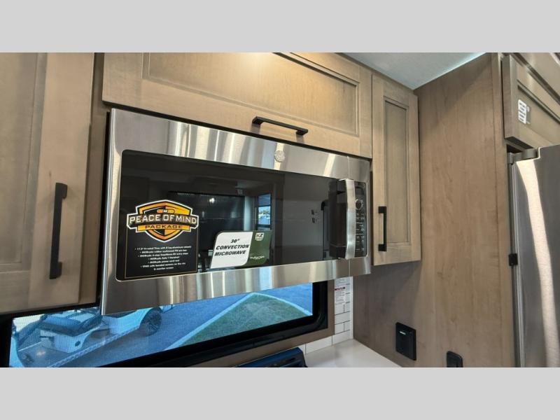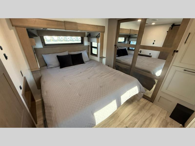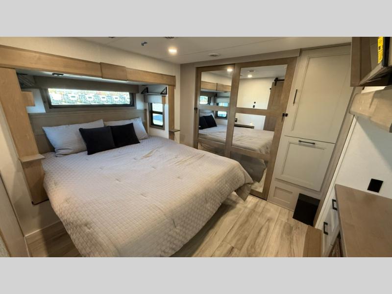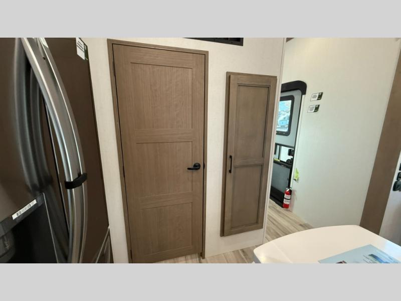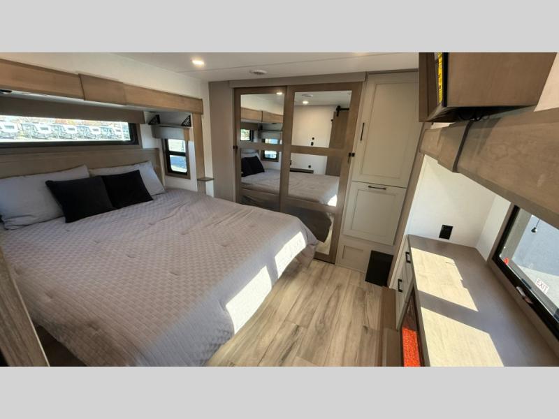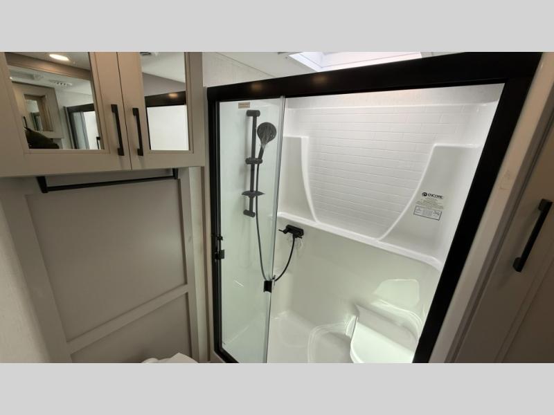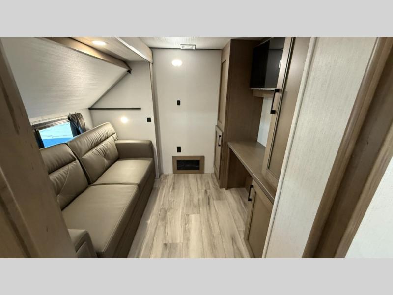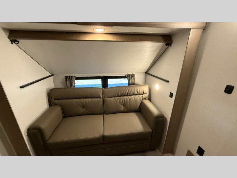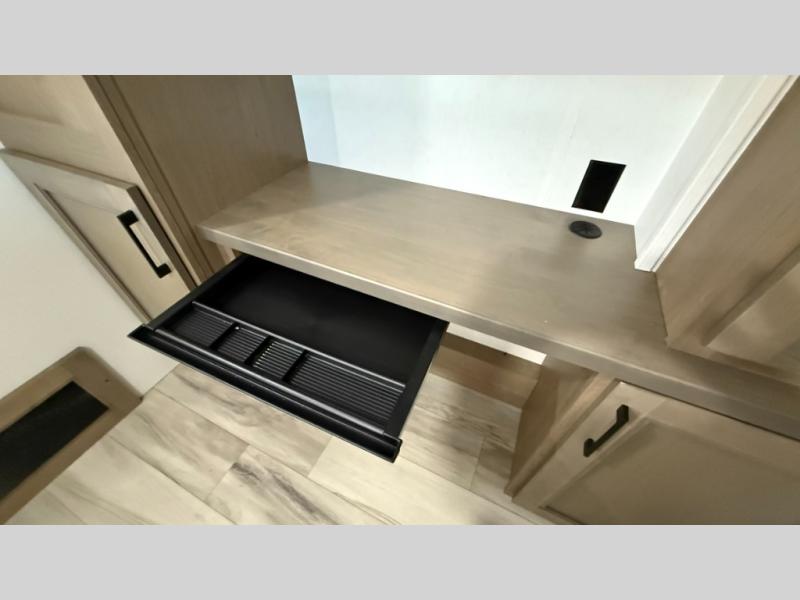 With any KZ Durango Gold full-time luxury fifth wheel, you will enjoy the new Blancher Maple and Morel Fog cabinetry, stainless steel appliances such as a 30" convection microwave and 24" oven with a four burner range, plus a stainless dishwasher. Other top features include an electric tilt bed with Serta Comfort foam king mattress, three 15K A/C units, plus theater seating with powered recline, heat and massage features. You will also appreciate a handy central vacuum system with attachments that stores out of sight. Each Durango Gold is constructed with six-sided aluminum framing, and has a heated, insulated and an enclosed underbelly. It is also constructed with Tufflex roofing material which is flexible, puncture resistant, and reflective. The now mandatory "Off The Grid" solar package includes two 200W solar panels, a 30A MPPT solar charge controller, and a 2,000W True Sine Wave inverter for off-grid capabilities.