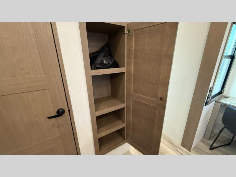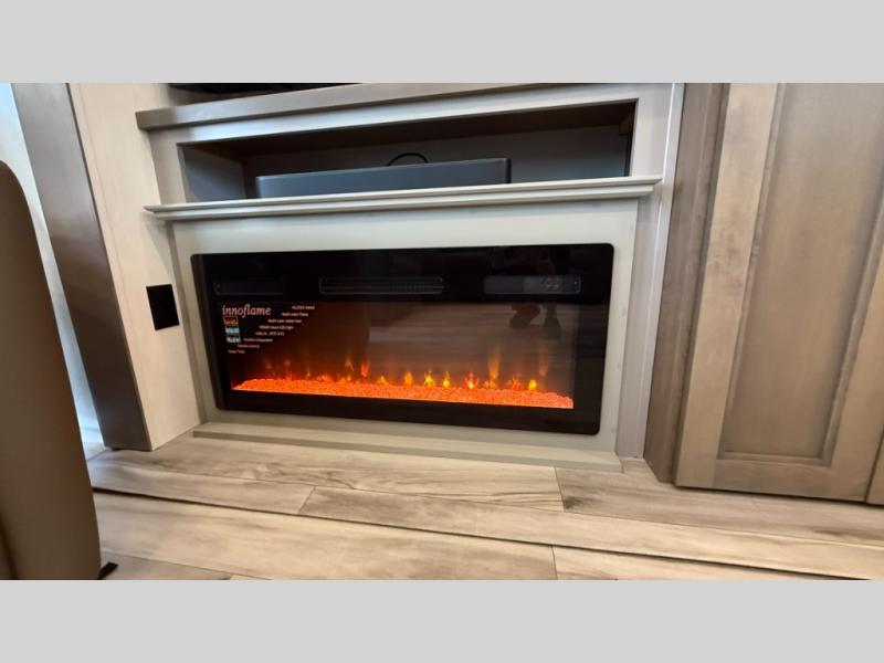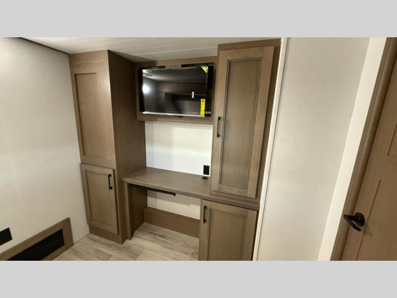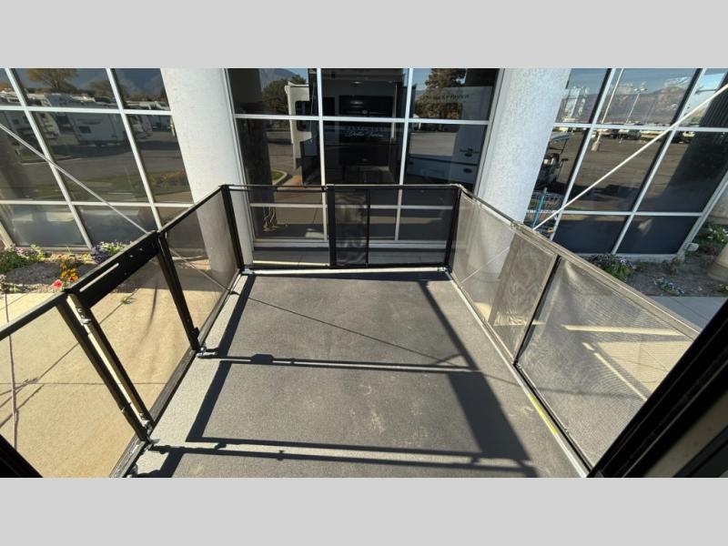 When you enjoy traveling with family and friends, this Durango Gold can provide everything you want, plus more! Beginning with the rear patio door that leads to the unique patio deck that provides a place to relax and unwind as well as stow a few items above ground. When you are ready to experience luxury and comfort, head back inside to the fireplace below the 50" Smart LED TV and sit in the chairs or on the hide-a-bed sofa. There is also a sliding table/desk and a hide-a-bed sofa here for more seating and sleeping space. The cook will have full amenities, upgraded appliances, a kitchen island with a farmhouse stainless steel sink, solid surface countertops, and a pantry to store lots of goodies. The middle den/extra room can be utilized as a bedroom or office since there is a desk top and hide-a-bed option, plus a queen-size loft above. And you will be able to sleep like royalty in the front bedroom. There is plenty of storage for your clothing, as well as a 32" Smart LED TV, plus washer and dryer prep if you want the option to make laundry day easier!